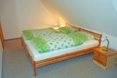 Über eine Holztreppe gelangt man in das Obergeschoss mit zwei getrennten Schlafzimmern. Diese sind jeweils mit bequemen Doppelbetten mit Nachttischen und Leselampen, Ablageschränken sowie einem Schrank mit TV - Gerät ausgestattet. Ein kleines Kinderreisebett und ein Hochstuhl können auf Wunsch kostenlos bereit gestellt werden.