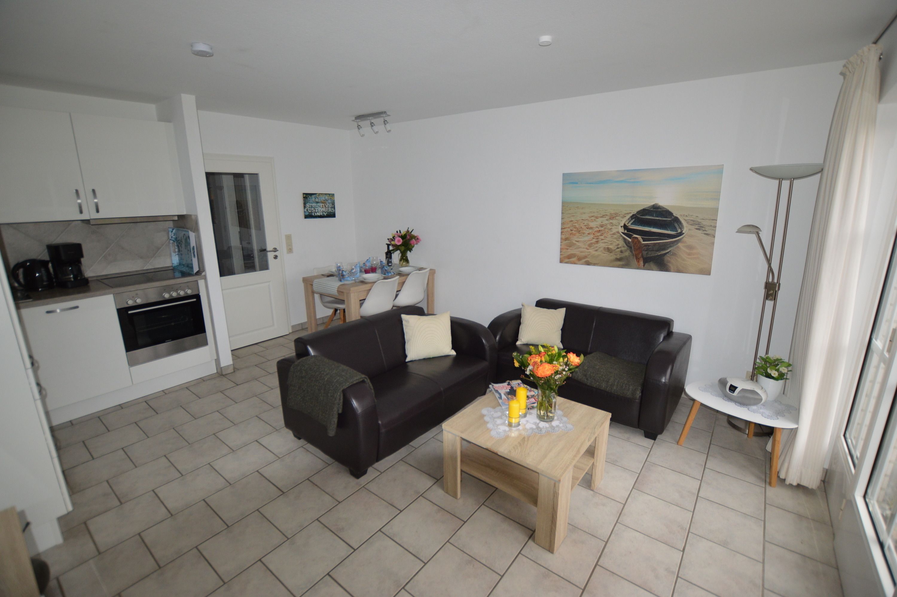 Ihre Ferienwohnung befindet sich im Erdgeschoss mitte. Hier wohnen Sie auf 45 m² mit 2 separaten Schlafräumen und schöner Sonnenterrasse. Sie bietet Platz für 2-4 Personen.