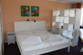 Die vollständig ausgestattete Einbauküche ist ideal für Selbstversorger und bietet eine gemütliche Essecke, die zum Verweilen einlädt. Für zusätzliche Entspannung sorgt die möblierte Loggia, die bei jeder Jahreszeit und jedem Wetter zum Relaxen einlädt. Die Wohnung ist nach Osten ausgerichtet, was den Gästen die Möglichkeit bietet, beim Frühstück die aufgehende Sonne zu genießen.