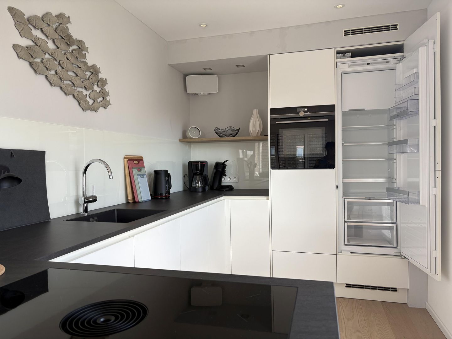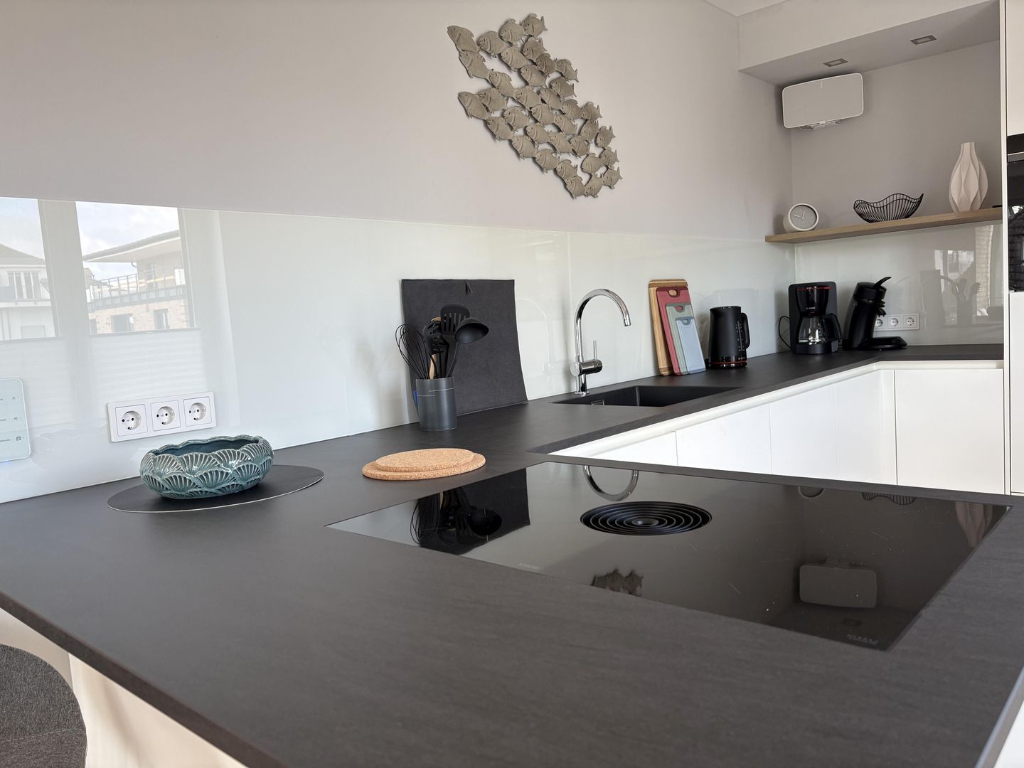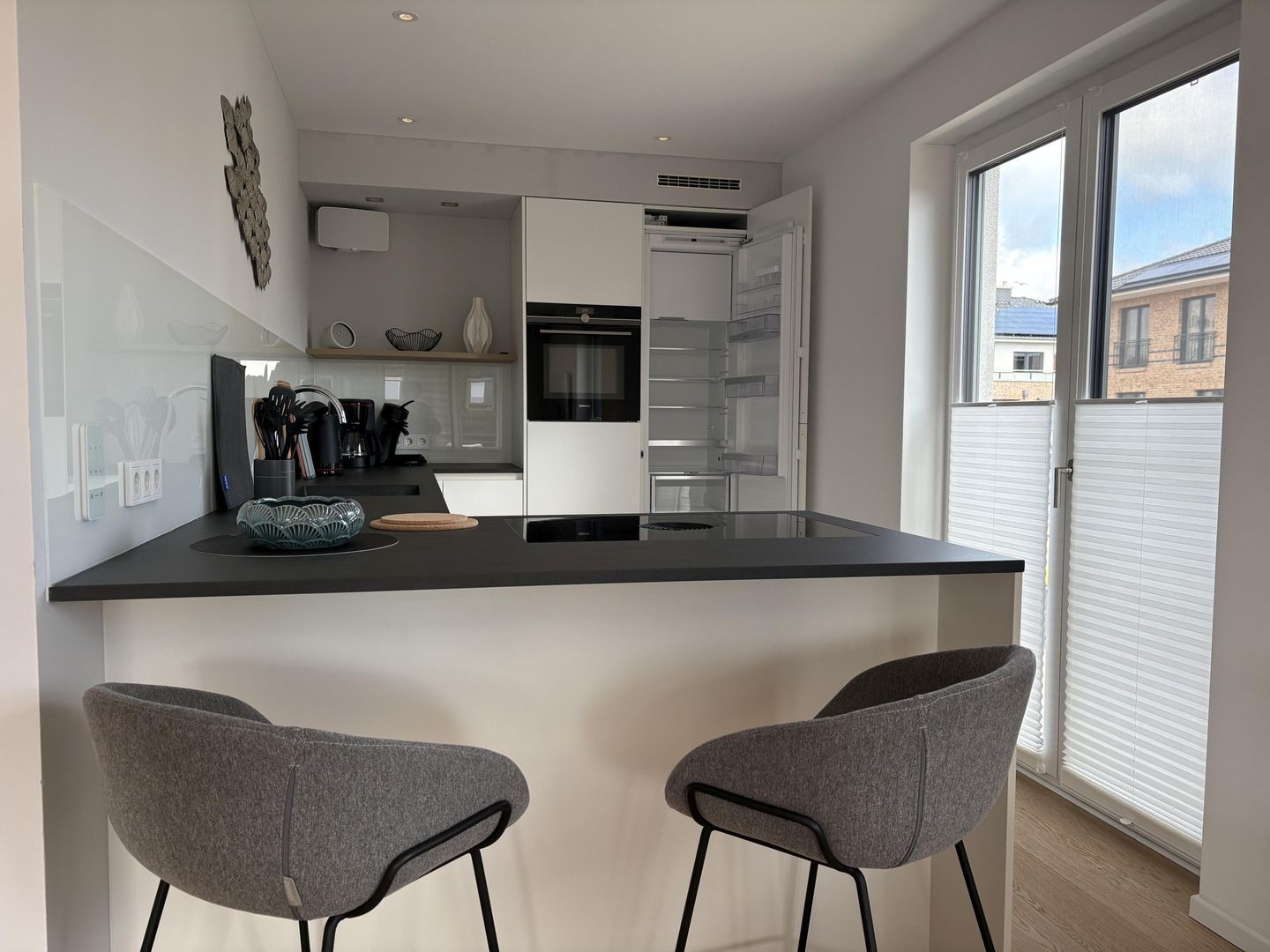- offene voll ausgestattete Küche mit Küchentresen und 2 Barhockern,