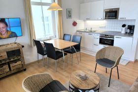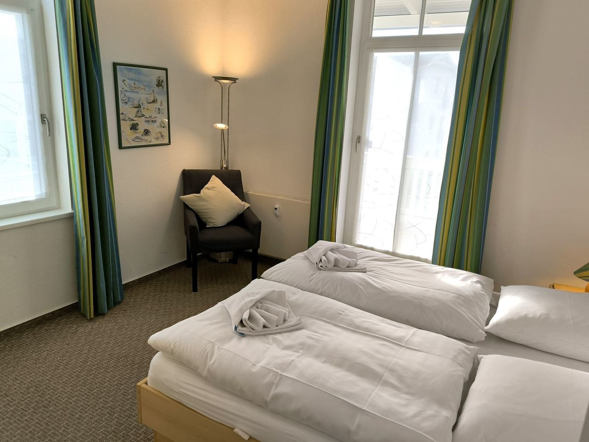 Die Villa Heimkehr liegt unweit der Waldpromenade oberhalb des Strandes in einer ruhigen Seitenstraße. Das Haus wurde um das Jahr 1900 erbaut und 1998 liebevoll im Stil der Bäderarchitektur restauriert. Die 3- Raum- Wohnung ist hell und gemütlich. Familien, Paare oder auch Aktivurlauber mit Hund werden sich hier sehr wohl fühlen. Den nur 300 m entfernt liegenden, feinsandigen Nordstrand mit der Bernsteinpromenade erreicht man in wenigen Gehminuten und auch das Ortzentrum ist in unmittelbarer Nähe. Erkunden Sie Göhren, Natur und Umgebung zu Fuß oder mit dem Fahrrad. Ein Fahrradständer ist direkt am Haus vorhanden. Basisinformationen - Erlaubte Haustiere: 2 - erlaubte Hundegröße: groß (über 60 cm) - befindet sich in: nichts zutreffend - Art d. Wohnung: Einliegerwohnung - Art d. Gebäudes: Mehrparteienhaus - Etage, auf der sich das Objekt befindet: OG1 - Gesamtanzahl d. Stockwerke im Gebäude über EG: 1 - Nichtraucherunterkunft - Schlafzimmeranzahl: 2 - Badezimmeranzahl: 1 Top Merkmale - WLAN - Heizung: überall - Balkon - Private PKW-Stellplätze insgesamt für diese Unterkunft: 1 - ㄴ davon private Außenstellplätze: 1 - Entfernung öffentliches Parkhaus: 300 m Schlafen im Wohnbereich - Schlafsofa 2 Personen Schlafzimmer 1 - Doppelbett (1,80m Breite) Schlafzimmer 2 - 2x Einzelbett Badezimmer Badezimmer 1 - Dusche - Toilette - Tageslicht Kochen/Wohnen - Kaffeemaschine: Filter-Kaffeemaschine - Kühl-/Gefrierschrank: Kühlschrank - Herd: Glaskeramikkochfeld - Dunstabzugshaube - Backofen - Toaster - Mikrowelle - Wasserkocher - Spülmaschine - Anzahl Wohnzimmer: 1 Entertainment - Fernseher: TV Umgebung - Cafés/Restaurants: 200 m - Strand: 400 m - Hundestrand: 400 m - Sandstrand: 400 m - Meer: 400 m