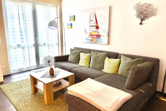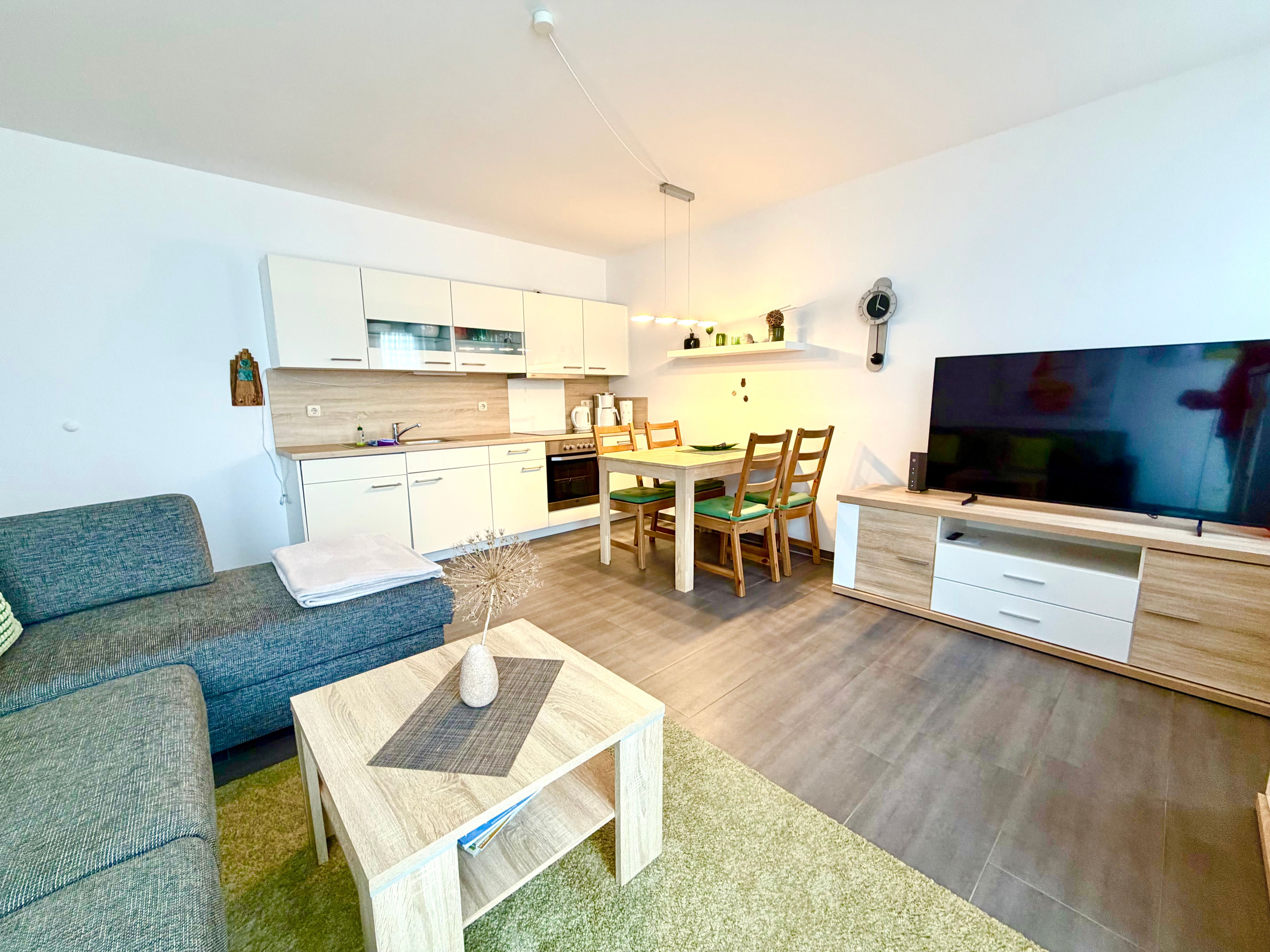 Eine modern eingerichtete Wohnung mit zwei Zimmer, Küche, Bad, Schlafzimmer und einem großzügigen Wohnraum mit Schlafsofa bietet Ihnen ein entspanntes Ambiente für Ihren Urlaub.