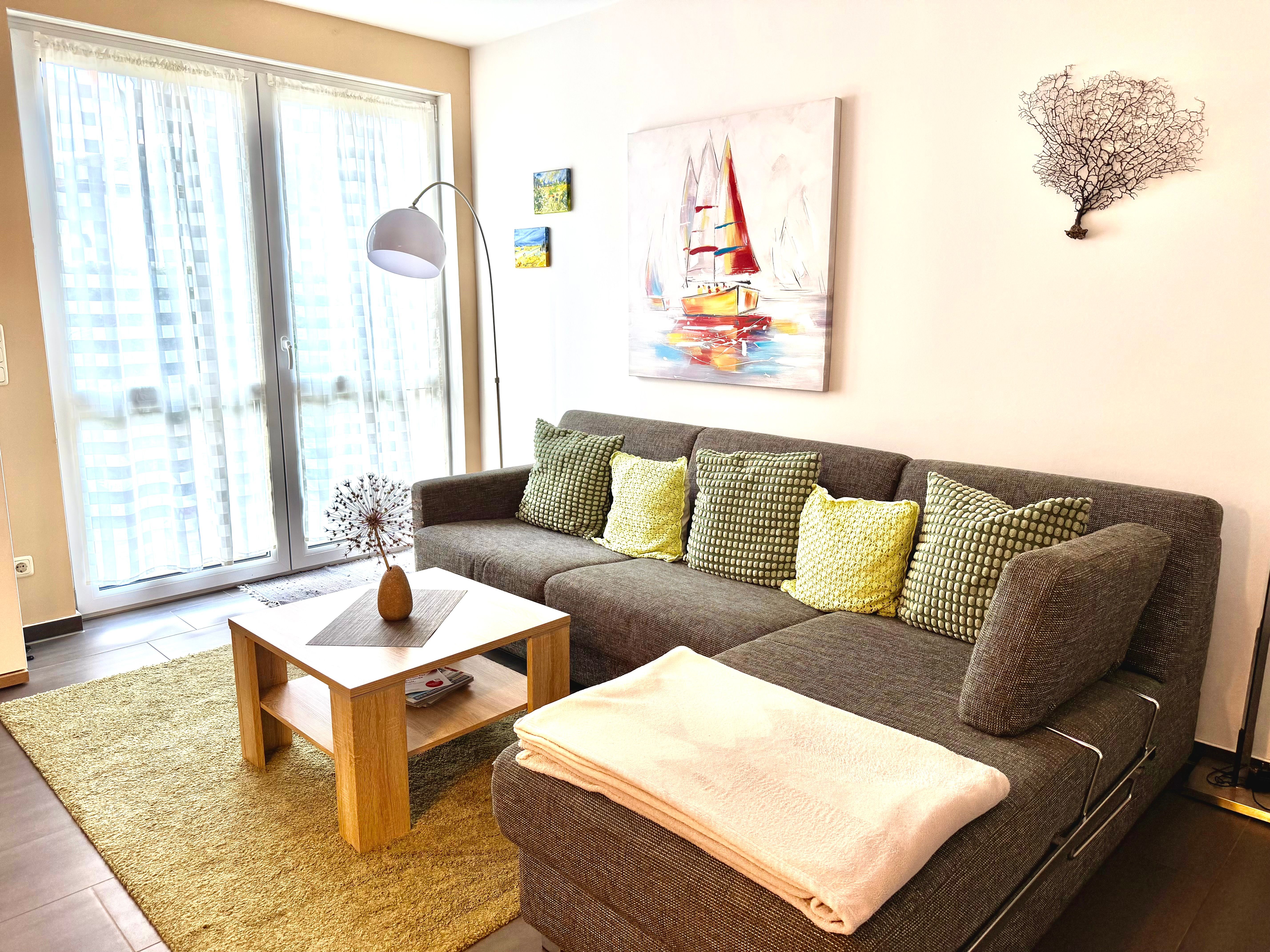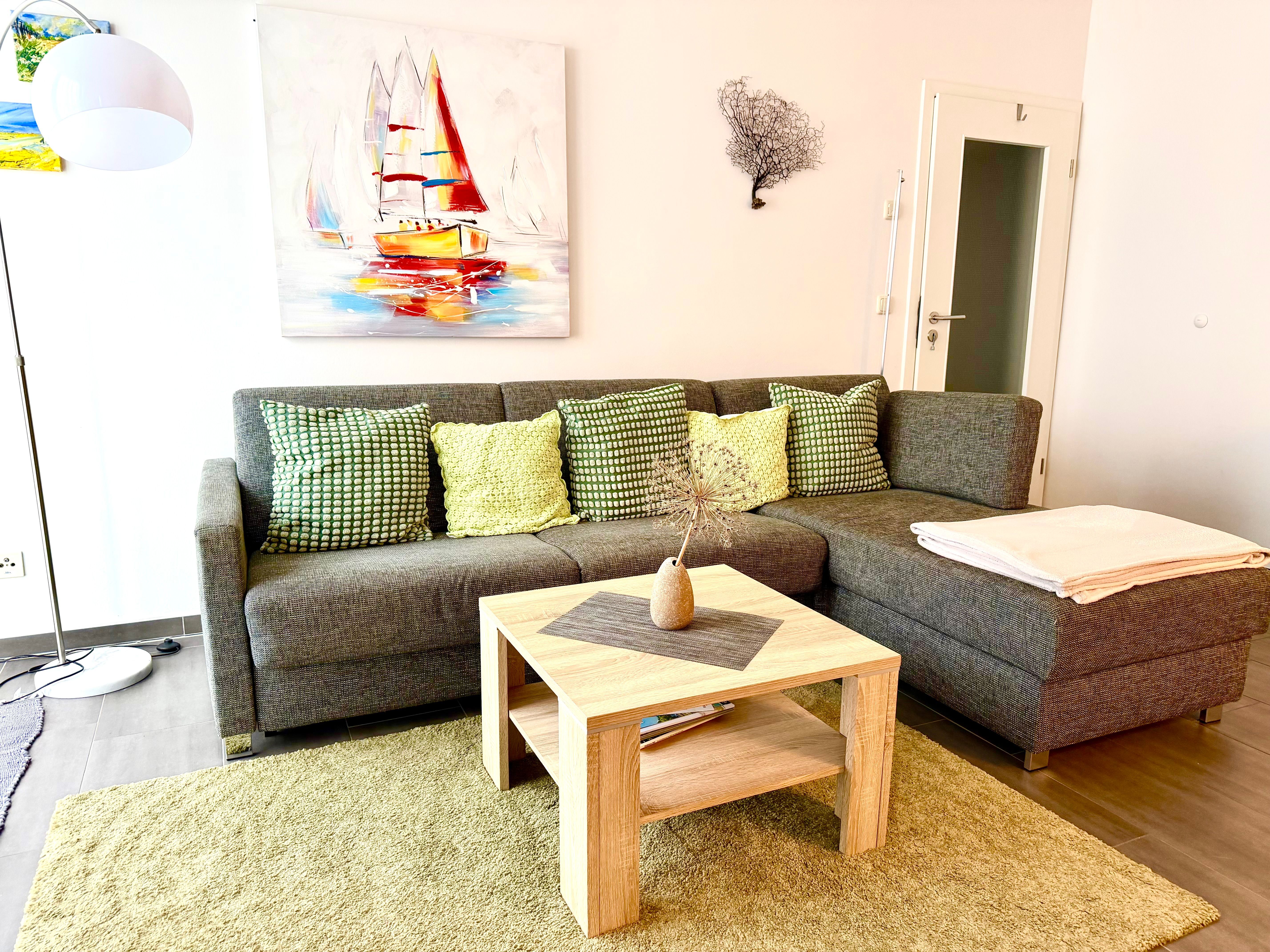 Eine modern eingerichtete Wohnung mit zwei Zimmer, Küche, Bad und einem großzügigen Wohnraum mit Schlafsofa bietet Ihnen ein entspanntes Ambiente für Ihren Urlaub.