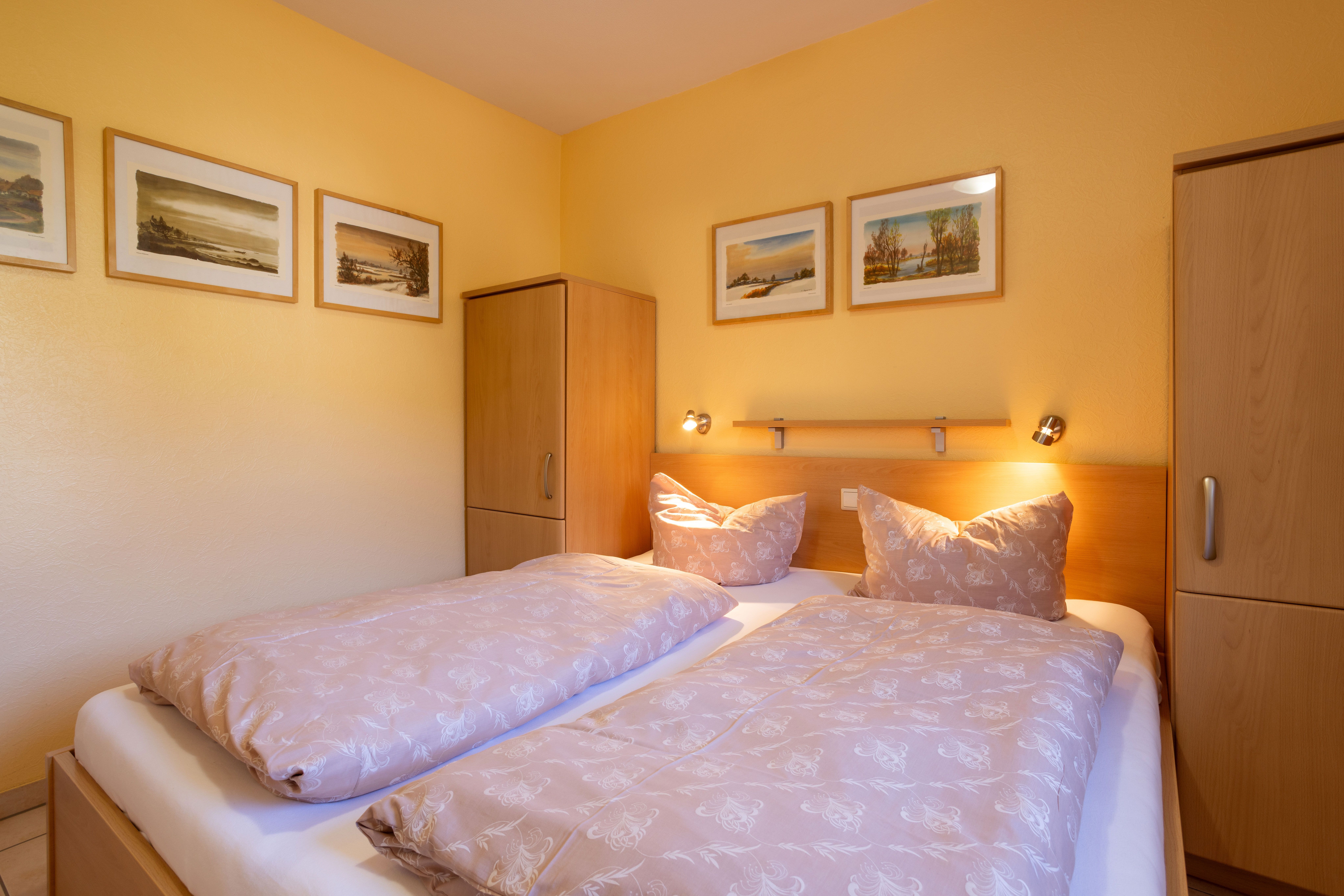 Das Ferienhaus 4 wurde 2007 komplett neu umgebaut und modernisiert. Es ist hell und freundlich eingerichtet und verfügt über eine hochwertige Ausstattung. Warme Farbtöne, bequeme Möbel, ein Kamin und weitere abgestimmte Wohnaccessoires, vermitteln schnell ein angenehmes Wohngefühl. Es verfügt über 33 qm Wohnfläche für Ihren Urlaub. Mit dem Entree gelangen Sie in den kombinierten Eingangs- und Küchenbereich. Hier finden Sie eine Einbauküche mit Backofen, Glaskeramikkochfeld, Kühlschrank mit Eisfach und Dunstabzug sowie Mikrowelle, Spüle und kompletten Küchenzubehör. Der separate Essplatz befindet sich in unmittelbarer Nähe und bietet für 4 Personen Platz. Das Schlafzimmer verfügt über ein Doppelbett und ausreichend Stauraum. Vom Küchenbereich gelangen Sie in den Wohnbereich mit Doppelbettcouch (für Aufbettung 2 Kinder 14 Jahre) und Clubsessel. In den vorhandenen Ablagemöglichkeiten haben wir Lektüre, Spiele und Informationen für Ihre Urlaubsgestaltung bereitgestellt. TV empfangen Sie über einen regionalen Kabelanschluss mit ca. 36 Programmen. Im Bad befinden sich eine Dusche 90 x 90 cm, WC und Handwaschbecken sowie weitere Ablagemöglichkeiten. Die zum Ferienhaus gehörende überdachte Terrasse liegt nach Süden und bietet Sitzgelegenheiten und einen Strandkorb. Eine zweite offene Terrasse liegt mit Sitzgelegenheiten in den Innenhof. Der Parklatz befindet sich ca. 15 Meter entfernt auf der Anlage. Bettwäsche wird bereitgestellt und aufgezogen, Handtücher können durch den Vermieter leider nicht gestellt werden.