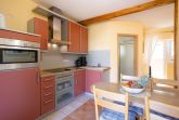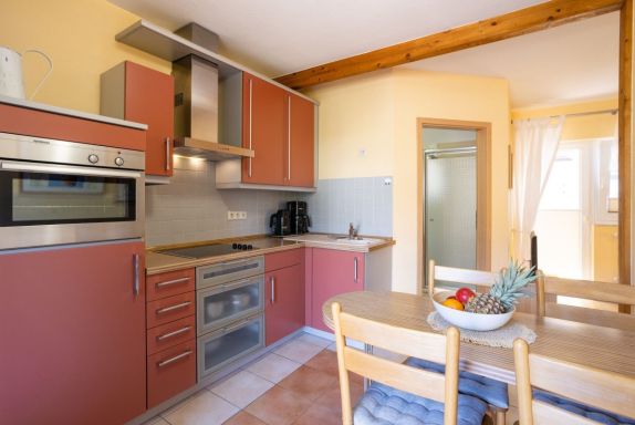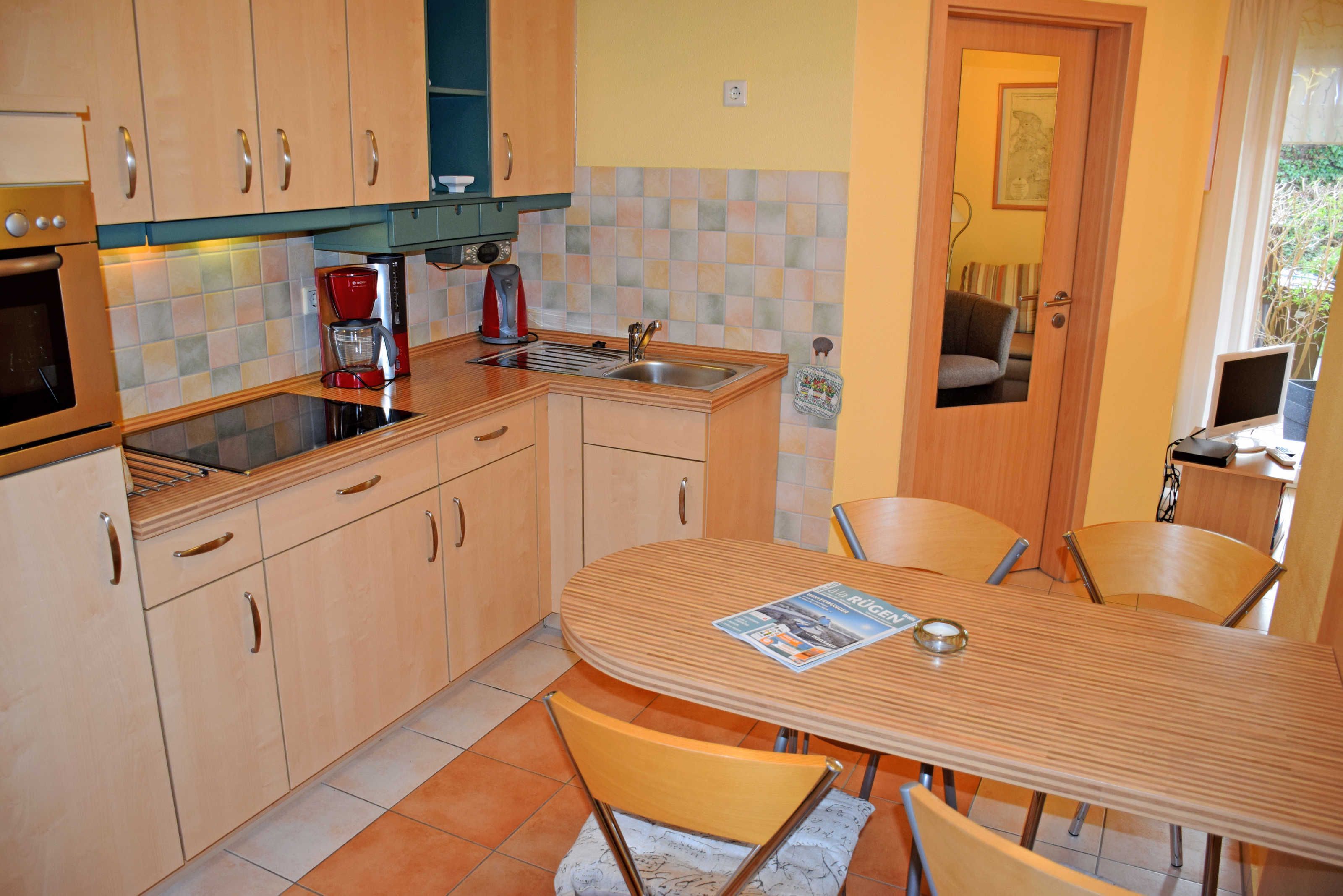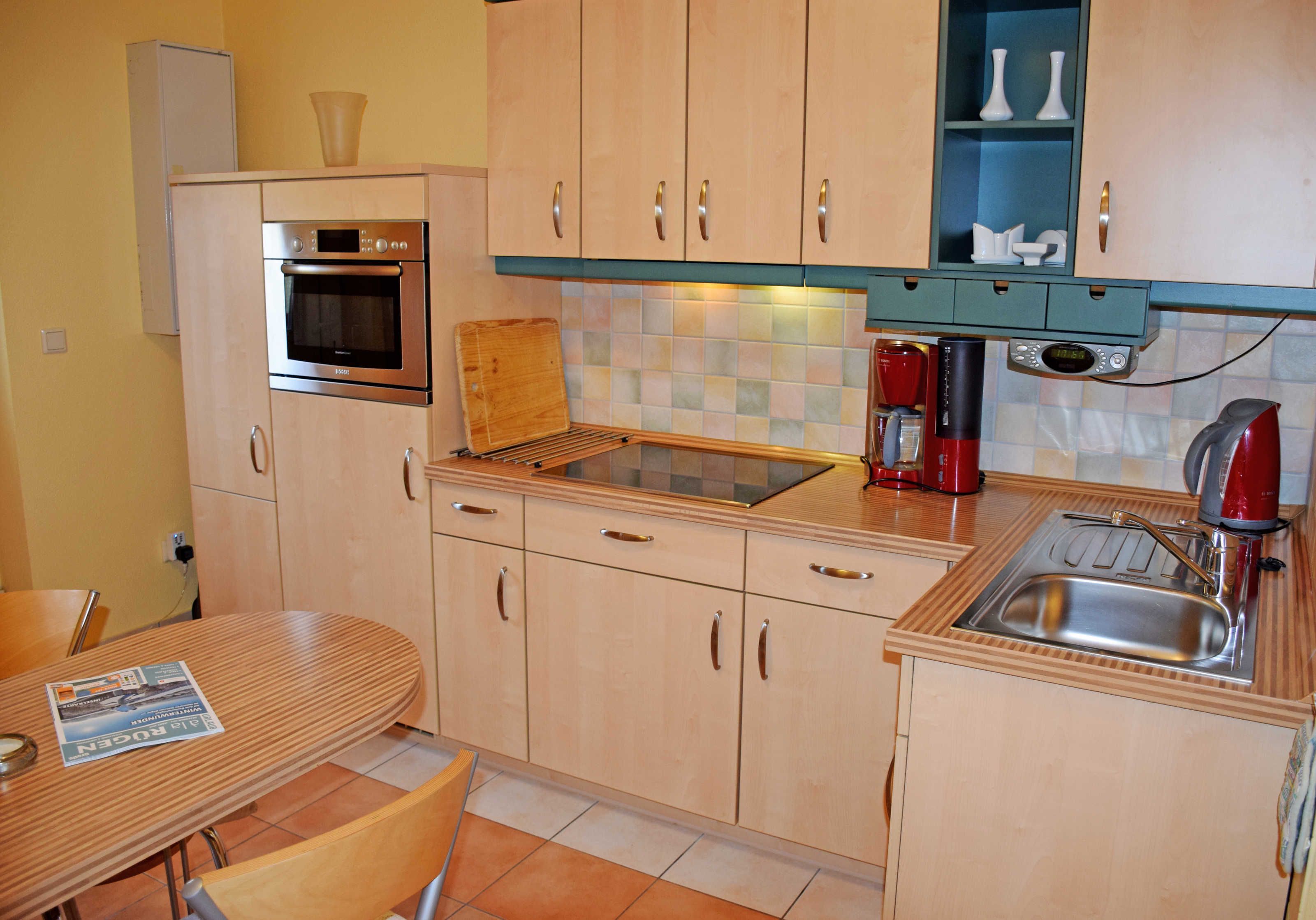 Mit dem Entree gelangen Sie in den kombinierten Eingangs- und Küchenbereich. Hier finden Sie eine Einbauküche mit Backofen, Glaskeramikkochfeld, Kühlschrank mit Eisfach und Dunstabzug sowie Mikrowelle, Spüle und kompletten Küchenzubehör. Der separate Essplatz befindet sich in unmittelbarer Nähe und bietet für 4 Personen Platz. Das Schlafzimmer verfügt über ein Doppelbett und ausreichend Stauraum. Ein Kinderreisebett kann nur im Wohnraum aufgestellt werden!