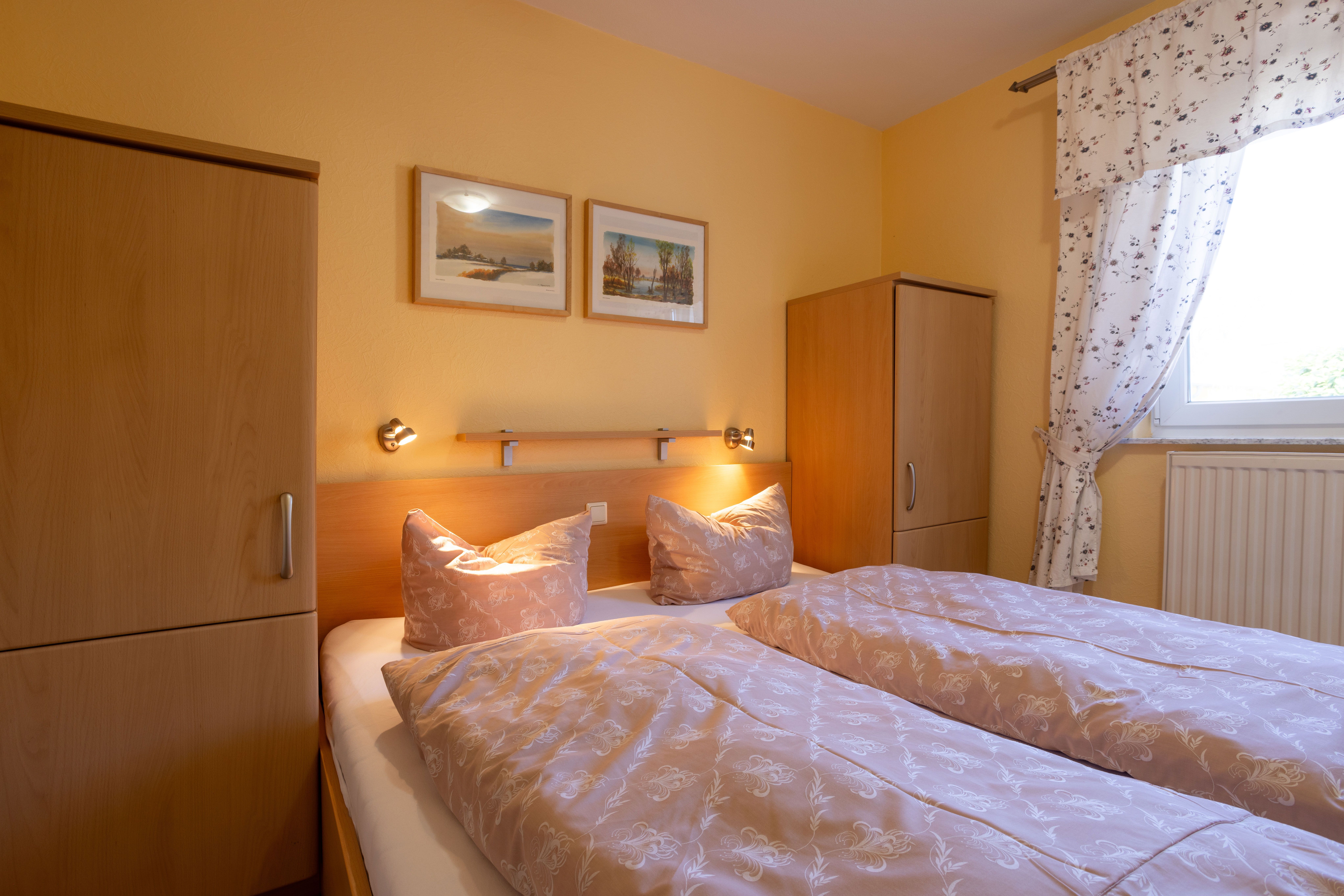 Das Ferienhaus 5 wurde 2007 komplett neu umgebaut und modernisiert. Es ist hell und freundlich eingerichtet und verfügt über eine hochwertige Ausstattung. Warme Farbtöne, bequeme Möbel, ein Kamin und weitere abgestimmte Wohnaccessoires, vermitteln schnell ein angenehmes Wohngefühl. Es verfügt über 33 qm Wohnfläche für Ihren Urlaub. Mit dem Entree gelangen Sie in den kombinierten Eingangs- und Küchenbereich. Hier finden Sie eine Einbauküche mit Backofen, Glaskeramikkochfeld, Kühlschrank mit Eisfach und Dunstabzug sowie Mikrowelle, Spüle und kompletten Küchenzubehör. Der separate Essplatz befindet sich in unmittelbarer Nähe und bietet für 4 Personen Platz. Das Schlafzimmer verfügt über ein Doppelbett und ausreichend Stauraum. Vom Küchenbereich gelangen Sie in den Wohnbereich mit Doppelbettcouch (für Aufbettung 2 Kinder 14 Jahre) und Clubsessel. In den vorhandenen Ablagemöglichkeiten haben wir Lektüre, Spiele und Informationen für Ihre Urlaubsgestaltung bereitgestellt. TV empfangen Sie über einen regionalen Kabelanschluss mit ca. 36 Programmen. Im Bad befinden sich eine Dusche 90 x 90 cm, WC und Handwaschbecken sowie weitere Ablagemöglichkeiten. Die zum Ferienhaus gehörende überdachte Terrasse liegt nach Süden und bietet Sitzgelegenheiten und einen Strandkorb. Eine zweite offene Terrasse liegt mit Sitzgelegenheiten in den Innenhof. Der Parklatz befindet sich ca. 15 Meter entfernt auf der Anlage. Bettwäsche wird bereitgestellt und aufgezogen, Handtücher können durch den Vermieter leider nicht gestellt werden.
