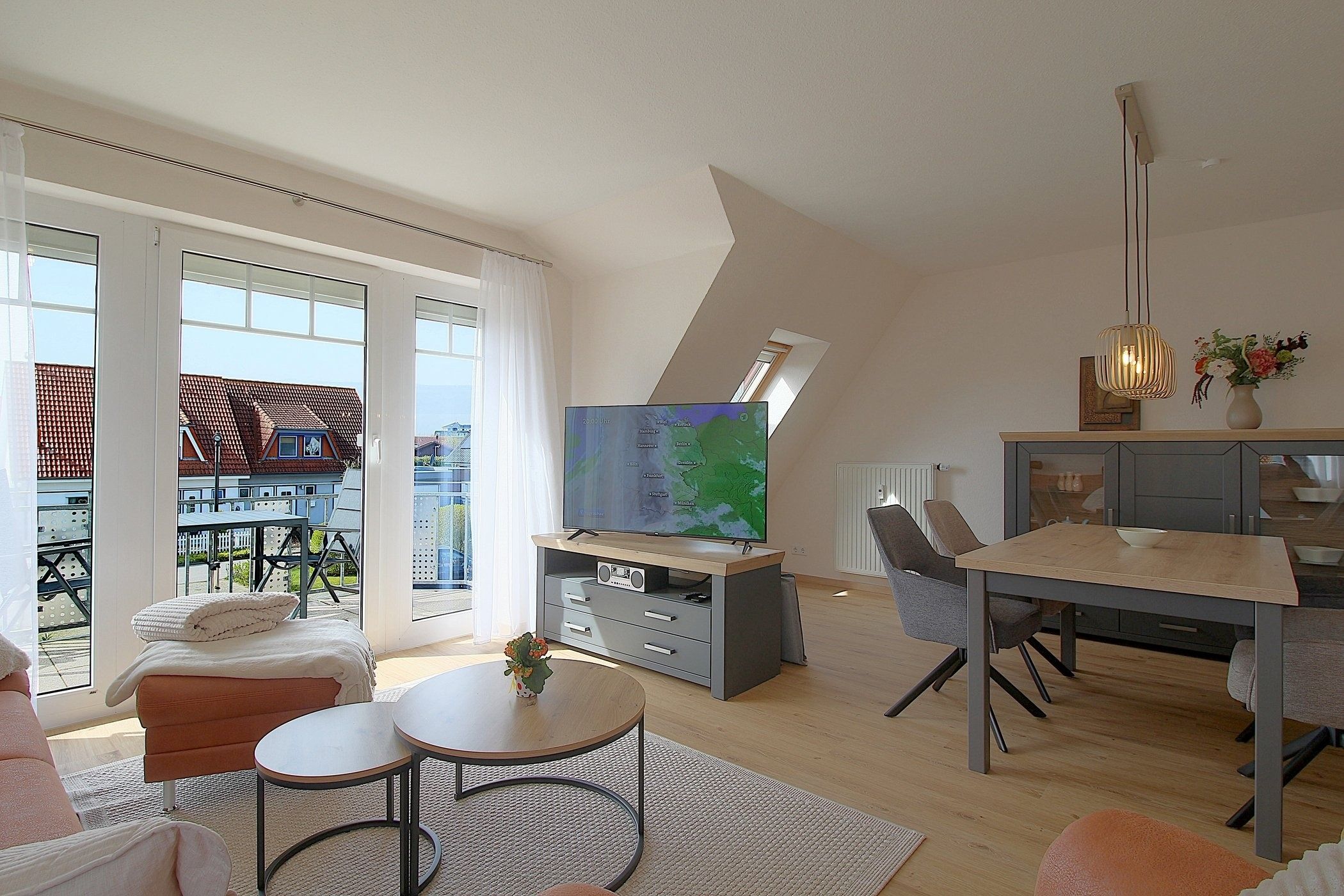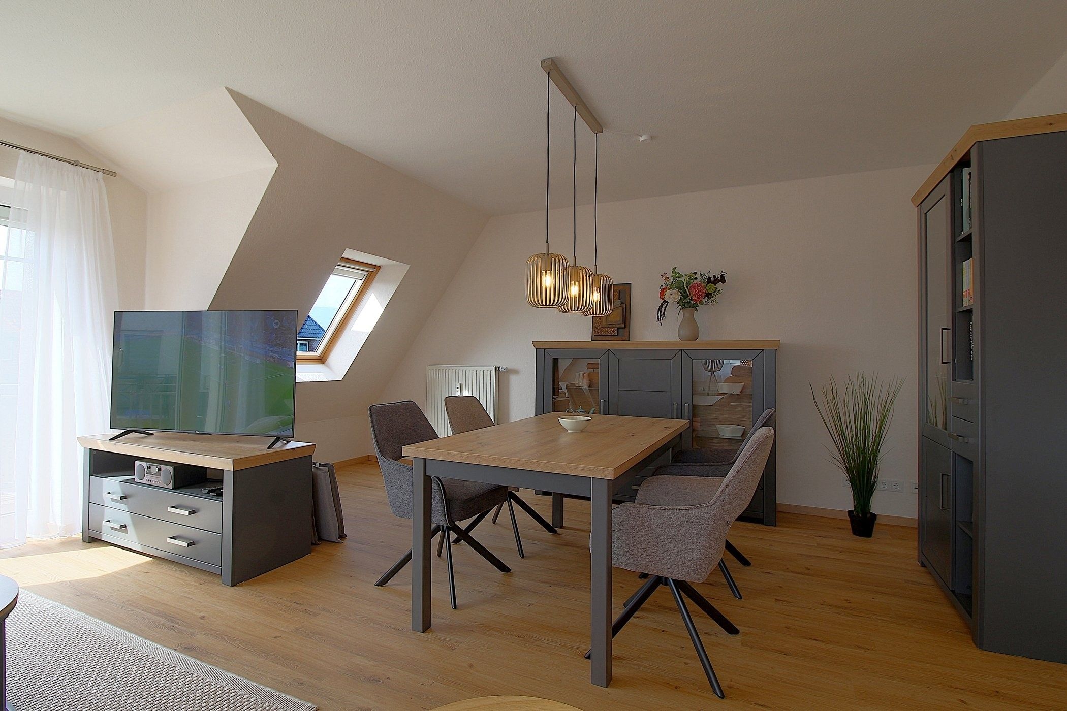 Die sonnendurchflutete Wohnung wurde gerade frisch renoviert und neu eingerichtet. Der Wohn- und Essbereich mit Ausgang zum Balkon, gemütlicher Microfasercouch und großem Essplatz bietet Platz für die 4 köpfige Familie. Flat TV und ein DAB-Radio mit CD, Streaming und Bluetooth sorgen für Unterhaltung.