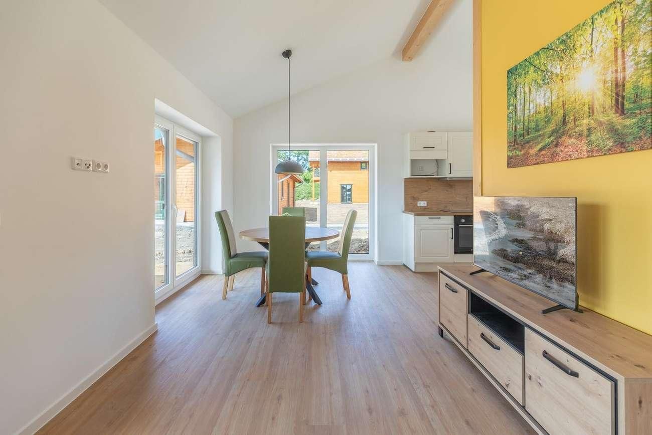 Die offene Küche ist voll ausgestattet mit Induktionskochfeld, Backofen, Mikrowelle, Spülmaschine, Senseo-Kaffeemaschine und Kühlschrank mit Gefrierfach – perfekt für gemeinsame Kochabende. Im gemütlichen Wohnbereich laden eine Sofaecke und ein Smart-Fernseher zum Verweilen ein. Kostenloses, schnelles WLAN hält Sie jederzeit online. Der angrenzende Essbereich bietet ausreichend Platz für alle Gäste.