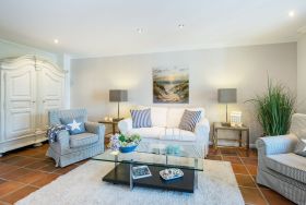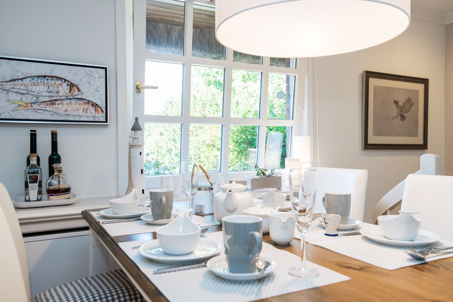 Sie betreten die Erdgeschosswohnung mit Souterrain, über einen Windfang mit Garderobe und Gästetoilette. Von hier aus gelangen sie in die großzügige und liebevoll gestaltete Kombination aus Wohn- und Esszimmer mit vollständig ausgestatteter Einbauküche und exklusiver Möblierung - die Bilder sprechen für sich. Ausgesuchte Accessoires und abgestimmte Farben sorgen für eine rundum Wohlfühlatmosphäre. Flat-Screen-TV, Stereoanlage mit CD und W-LAN sorgen für die gewünschte Unterhaltung.