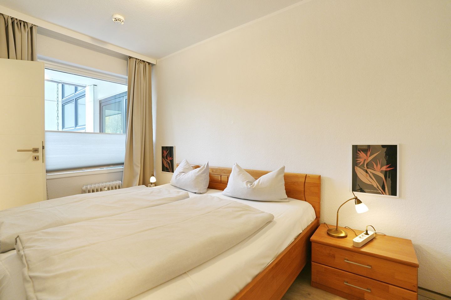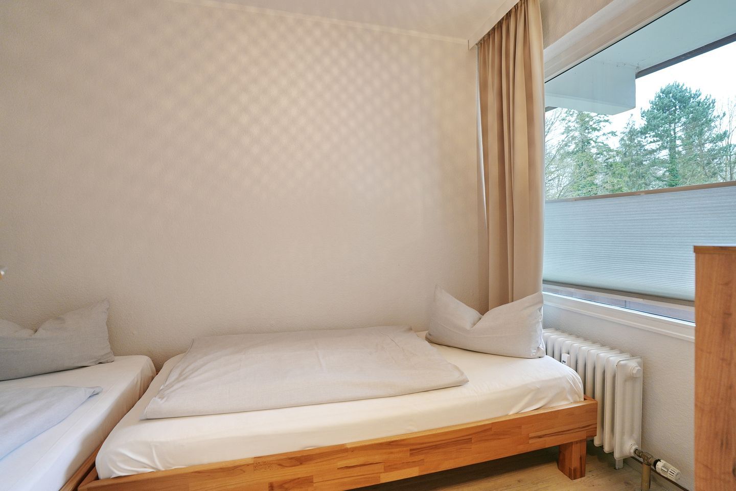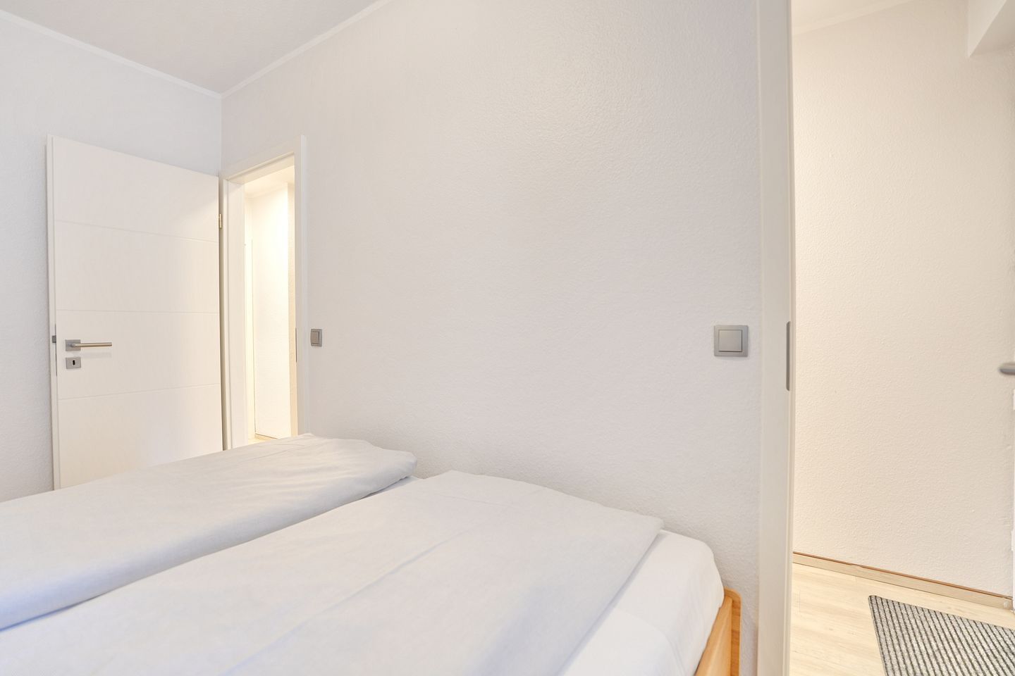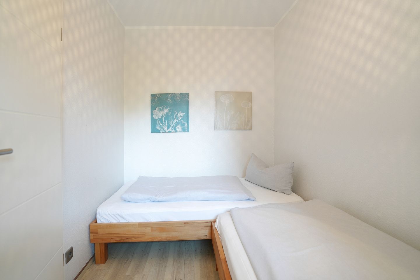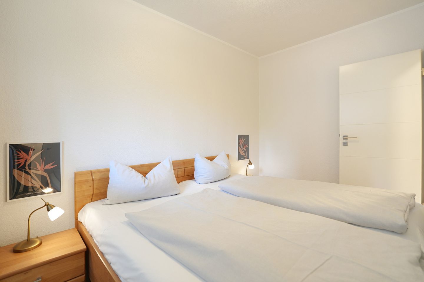 2 durch den Eingangsflur getrennte Schlafzimmer bieten Schlafmöglichkeiten für bis zu 4 Personen. Ein Schlafzimmer ist mit 2 Einzelbetten (Liegefläche 0,90 x 2,0m) und das zweite mit einem Doppelbett (Liegefläche 1,80 x 2,0m) ausgestattet.