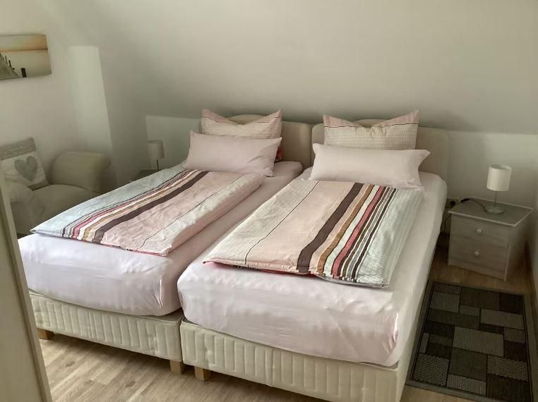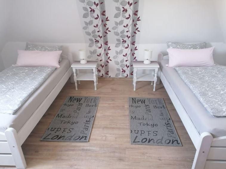 Die beiden Schlafräume sind komfortabel eingerichtet und bieten erholsamen Schlaf für bis zu vier Personen. Ein Schlafzimmer ist mit einem Doppelbett in der Größe 180 x 200 cm ausgestattet, das andere mit zwei Einzelbetten à 90 x 200 cm. Damit eignet sich die Wohnung sowohl für Paare als auch für Familien oder Freunde, die gemeinsam verreisen.