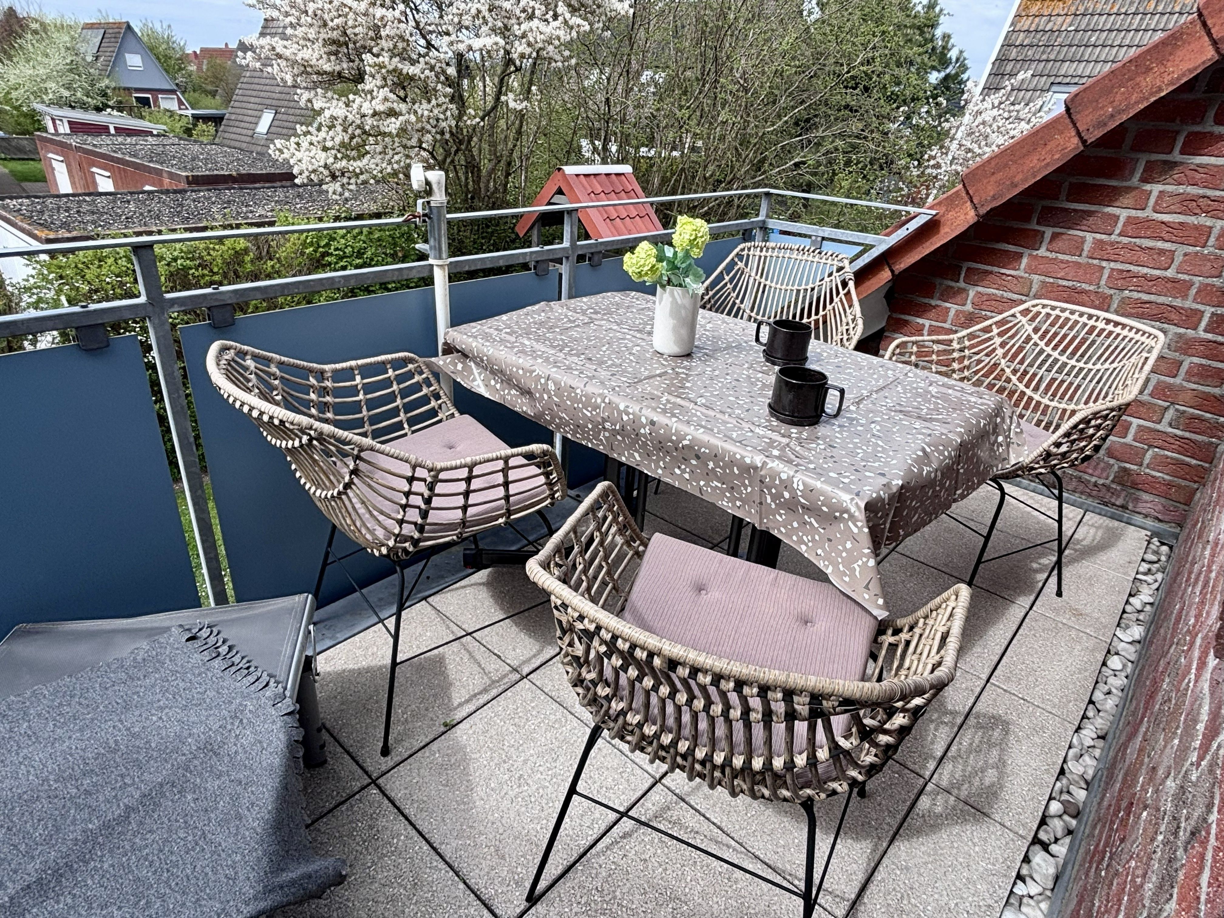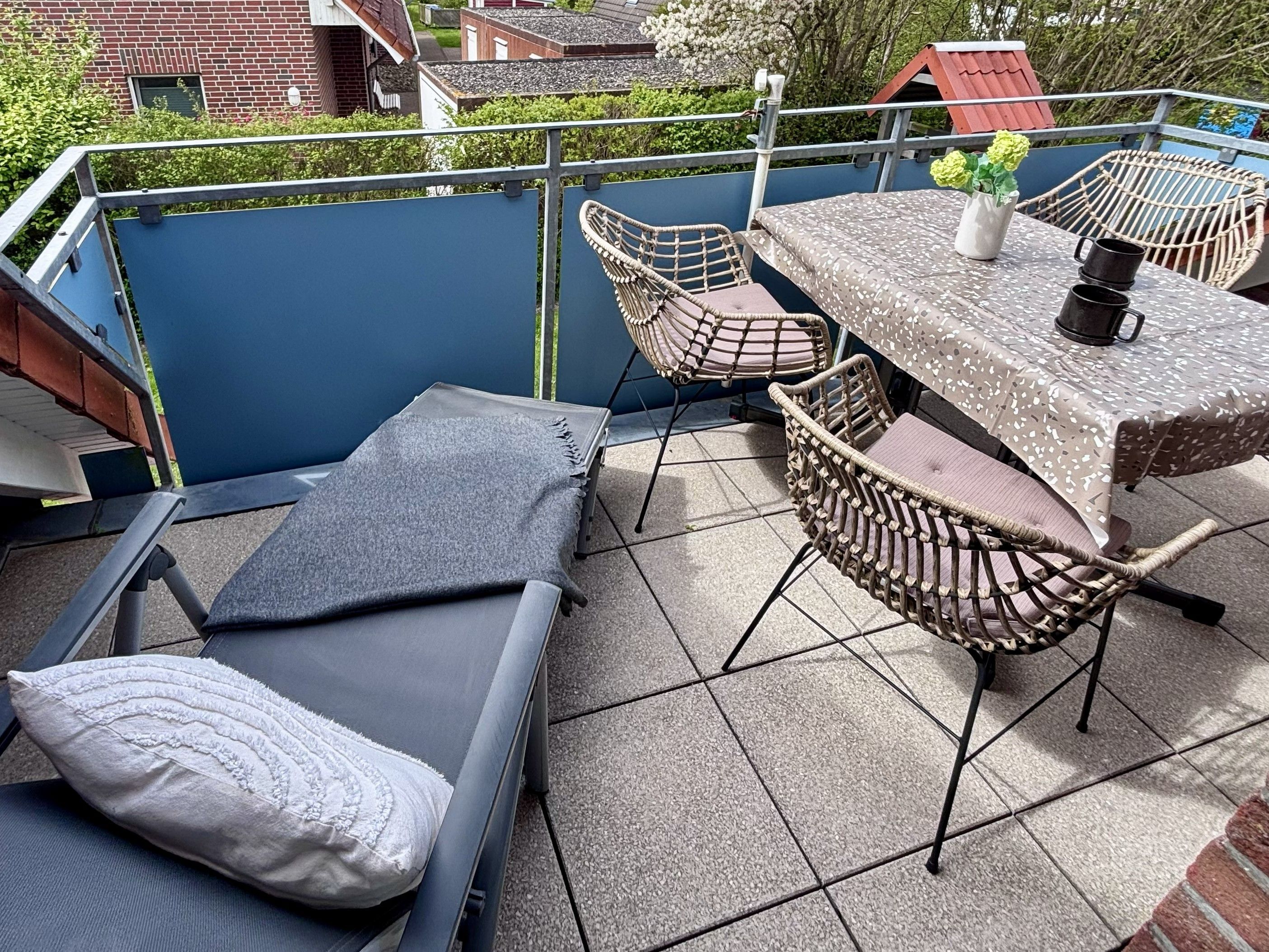 Die stilvoll eingerichtete Ferienwohnung im Obergeschoss verfügt über einen möblierten Balkon und bietet zusätzlich Zugang zu dem gemeinschaftlich genutzten Garten. Dieser ist familienfreundlich gestaltet und unter anderem mit Spielmöglichkeiten wie Rutsche, Sandkästen, Schaukel ausgestattet. Die Wohnung liegt zentral in Harlesiel, nur wenige Schritte vom Yachthafen entfernt.