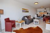 Die exklusive Küchenzeile ist unter anderem mit 4-Zonen-Cerankochfeld, einem Backofen, einem Geschirrspüler, einer Mikrowelle und einem Kühlschrank mit Gefrierfach ausgestattet. Ein Toaster, eine Kaffeemaschine und ein Wasserkocher vervollständigen die Küche.