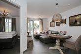 Im Wohnbereich der Ferienwohnung werden Sie von einer bequemen Eck-Ledercouch (Boxspring), einer Digital-Stereoanlage und von einem Flachbild-TV 48“ (121 cm Bildschirmdiagonale) zu geruhsamen Stunden eingeladen. Die bewegliche Wandhalterung bietet Ihnen den perfekten Einstellwinkel zur Couch oder zum Esstisch. Zusätzlich steht Ihnen der kostenlose WLAN-Anschluss des Hauses zur Verfügung. Der gemütliche Essbereich ist im Wohnbereich integriert und gewährt Ihnen viel Platz für entspannte Mahlzeiten.