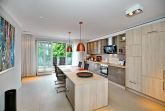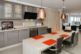Der offen gestaltete und helle Essbereich der Ferienwohnung lädt Sie zu entspannten Mahlzeiten ein. Über die Schiebetür in der Fensterfront haben Sie Zugang zu einer der beiden Süd-West-Terrassen. Die exklusive Küche ist Teil des Essbereiches und ist mit einem Geschirrspüler, einem Kühlschrank mit Gefrierfach sowie einem vierfachem Cerankochfeld, einer Mikrowelle und einem Backofen voll ausgestattet. Selbstverständlich stehen ein Toaster, eine Filterkaffeemaschine sowie ein Wasserkocher für Sie bereit.