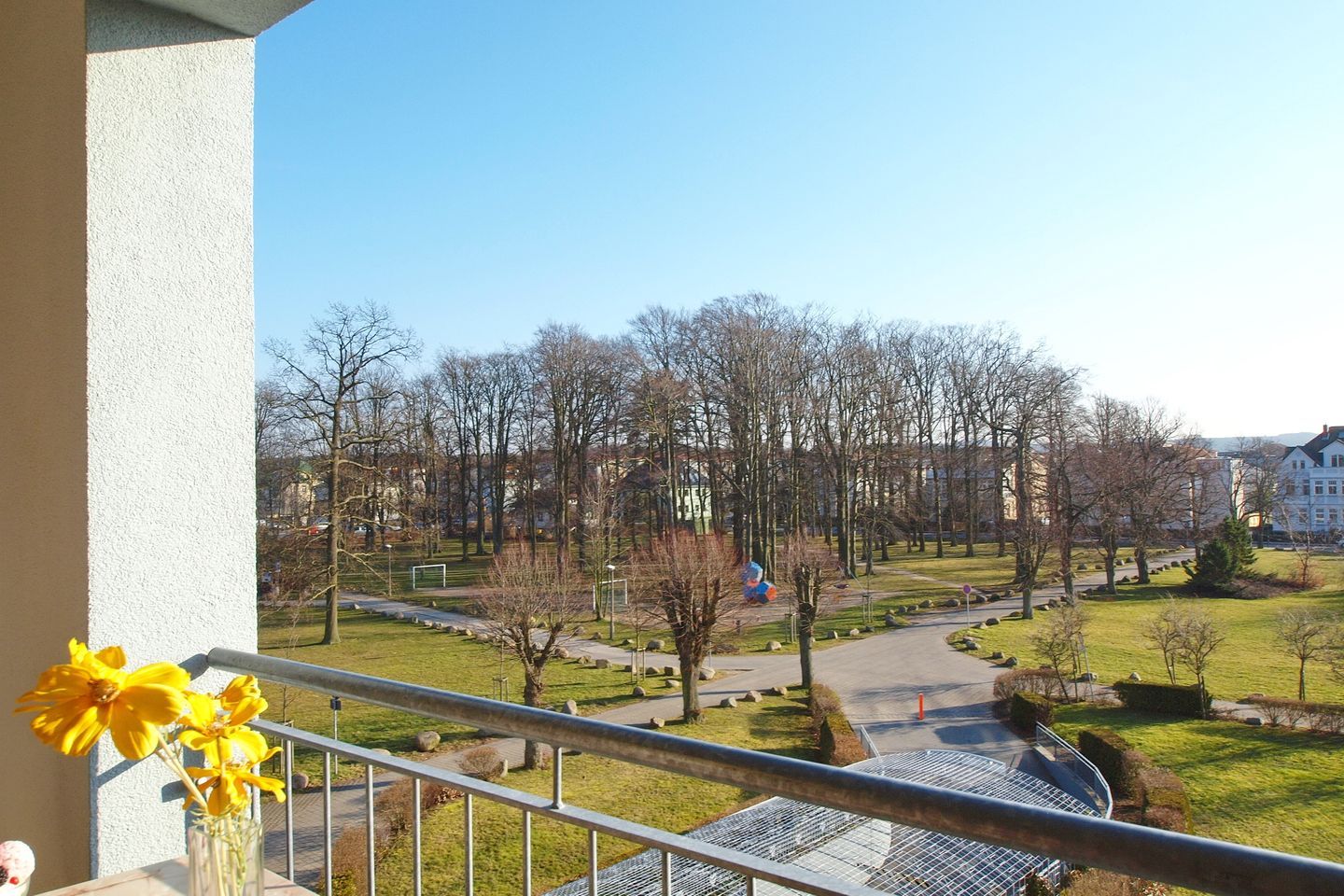 Das Haus Meeresblick mit Fahrstuhl und barrierefreiem Zugang liegt am westlichen Ende der Strandpromenade von Kühlungsborn. Ein Fahrradabstellraum sowie Münzwaschmaschinen und -trockner stehen dir im Gemeinschaftskeller zur Verfügung.