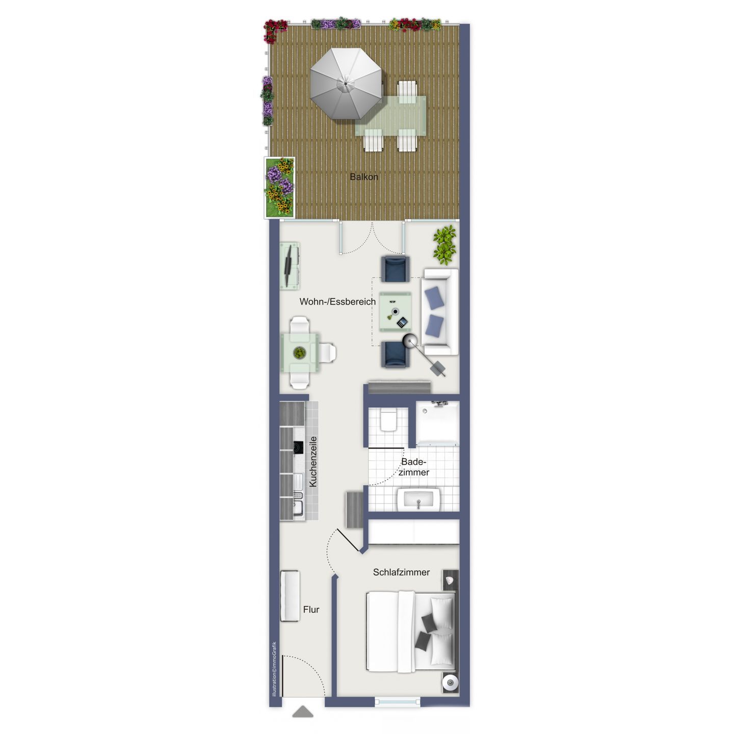 Die gemütliche Ferienwohnung im Ostseebad Kühlungsborn befindet sich im 2. Obergeschoss und verfügt über einen großzügigen, möblierten Balkon mit Teilseeblick. Mit einer Größe von 45 m² bietet Ihnen die Wohnung mit Wohnbereich, Essbereich, Schlafzimmer, Küchenzeile und Badezimmer viel Platz für einen erholsamen Ostseeurlaub. Die Entfernung zum Strand beträgt etwa 50 Meter.