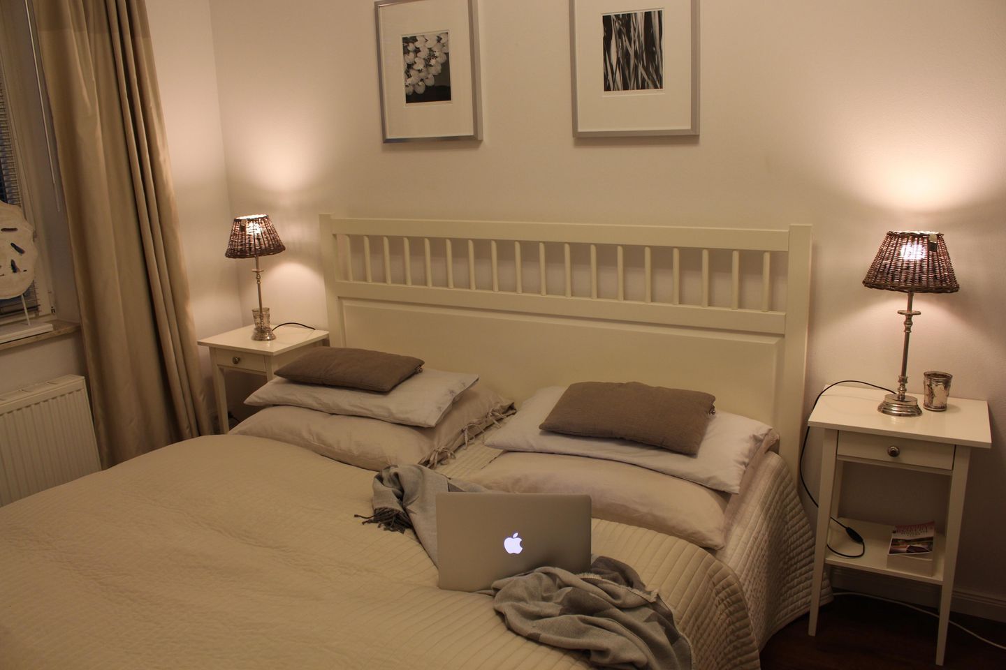 Im Schlafzimmer erwartet Sie ein komfortables Doppelbett (2 x 90 x 200 cm) für erholsamen Schlaf. Ein großer Kleiderschrank bietet viel Stauraum für Ihr Urlaubsgepäck. Die Doppelschlafcouch (160 x 200 cm) im Wohnbereich lässt sich mit wenigen Handgriffen in einen bequemen Schlafplatz für zwei weitere Personen umwandeln. Als Sicht- und Verdunkelungsschutz sind an den Fenstern Jalousien und Vorhänge angebracht (das Schlafzimmerfenster ist zum Atrium ausgerichtet).