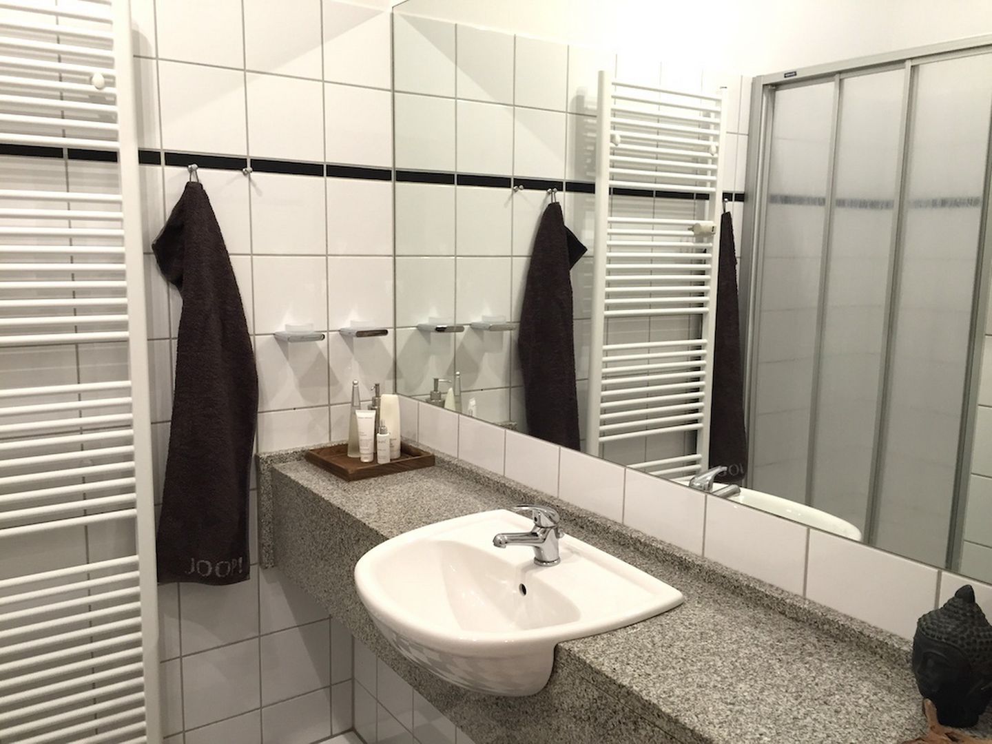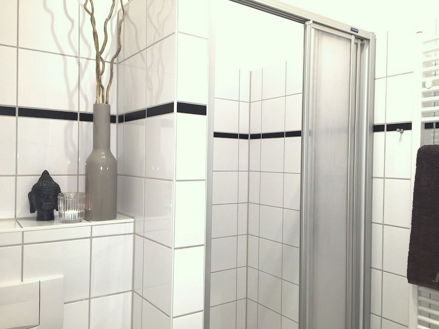 Die Ferienwohnung verfügt über ein Duschbad mit WC. Der großzügige Waschtisch bietet ausreichend Platz für Ihre persönlichen Utensilien. Der Küchen- und Essbereich sowie das Bad sind gefliest, während Wohn- und Schlafzimmer mit einem hochwertigen Designbelag ausgestattet sind. Es handelt sich um eine Nichtraucherwohnung, Haustiere sind nicht gestattet.