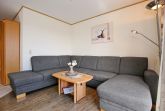 Im Wohnraum der Ferienwohnung laden ein Ecksofa, ein Flachbild-TV und eine Stereoanlage zu geselligen Abenden ein.