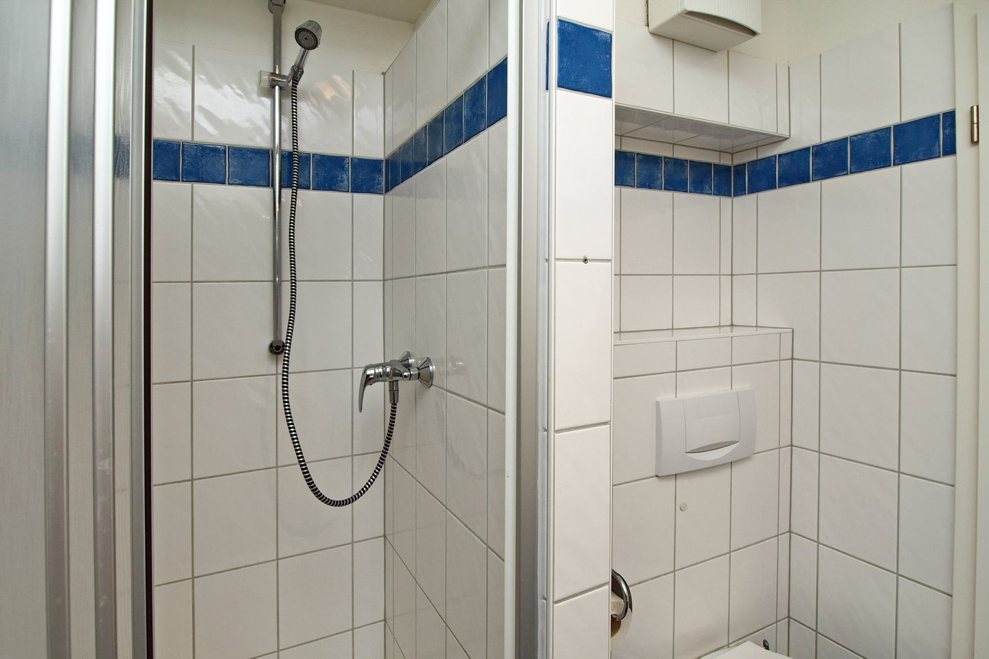 Die Ferienwohnung verfügt über ein gefliestes Duschbad mit WC und Föhn.