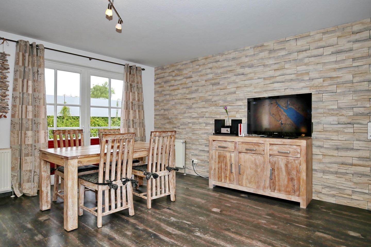 Verbringen Sie gemütliche Stunden im Wohnzimmer auf der großen Wohnlandschaft. Das Sofa lässt sich mit wenigen Handgriffen in einen Schlafplatz (1 x 130 x 200 cm) verwandeln. Für Abwechslung am Abend sorgen der Flachbild-TV, der DVD-Player, der CD-Player mit Radio, Bücher und Spiele sowie das kostenfreie WLAN. Genießen Sie gemeinsame Mahlzeiten am Esstisch mit 4 Stühlen.