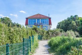 Das Feriendomizil Dünengarten liegt auf einem großzügigen Grundstück mit eigenem Strandzugang. Die Strandpromenade in Kühlungsborn West ist fußläufig in ca. 10 Minuten zu erreichen. Die gepflegte Parkanlage mit Wasserlauf und Wäldchen lädt zum Entspannen und Verweilen ein. Für die kleinen Abenteurer gibt es einen Spielturm auf dem Gelände. Die einzelnen Ferienwohnungen der 3 Häuser sind alle über Treppen erreichbar. Auf der Anlage gibt es einen Fahrradabstellplatz, einzelne Ferienwohnungen bieten auch einen Fahrradabstellraum. Direkt an der Apartmentanlage steht für jede Ferienwohnung ein kostenfreier Außenstellplatz zur Verfügung.
