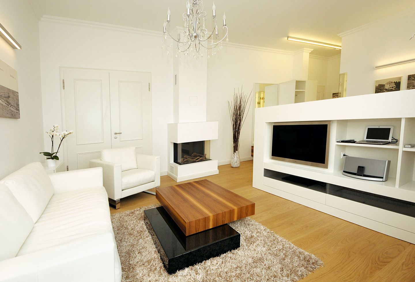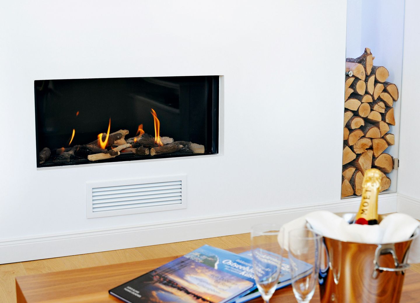 Die exklusiven Wohnbereiche der Ferienwohnung laden Sie jeweils mit einer gemütlichen Couch und einem Sessel zu geselligen Abendstunden ein. Große Flachbildfernseher mit Blu-ray Disc-/DVD-Player sowie HiFi-Anlagen garantieren beste Unterhaltung. Die Dekokamine (ohne Funktion) tragen zur behaglichen Atmosphäre der Wohnbereiche bei. Die integrierten Essbereiche bieten viel Platz für gemeinsame Mahlzeiten oder gesellige Spieleabende.