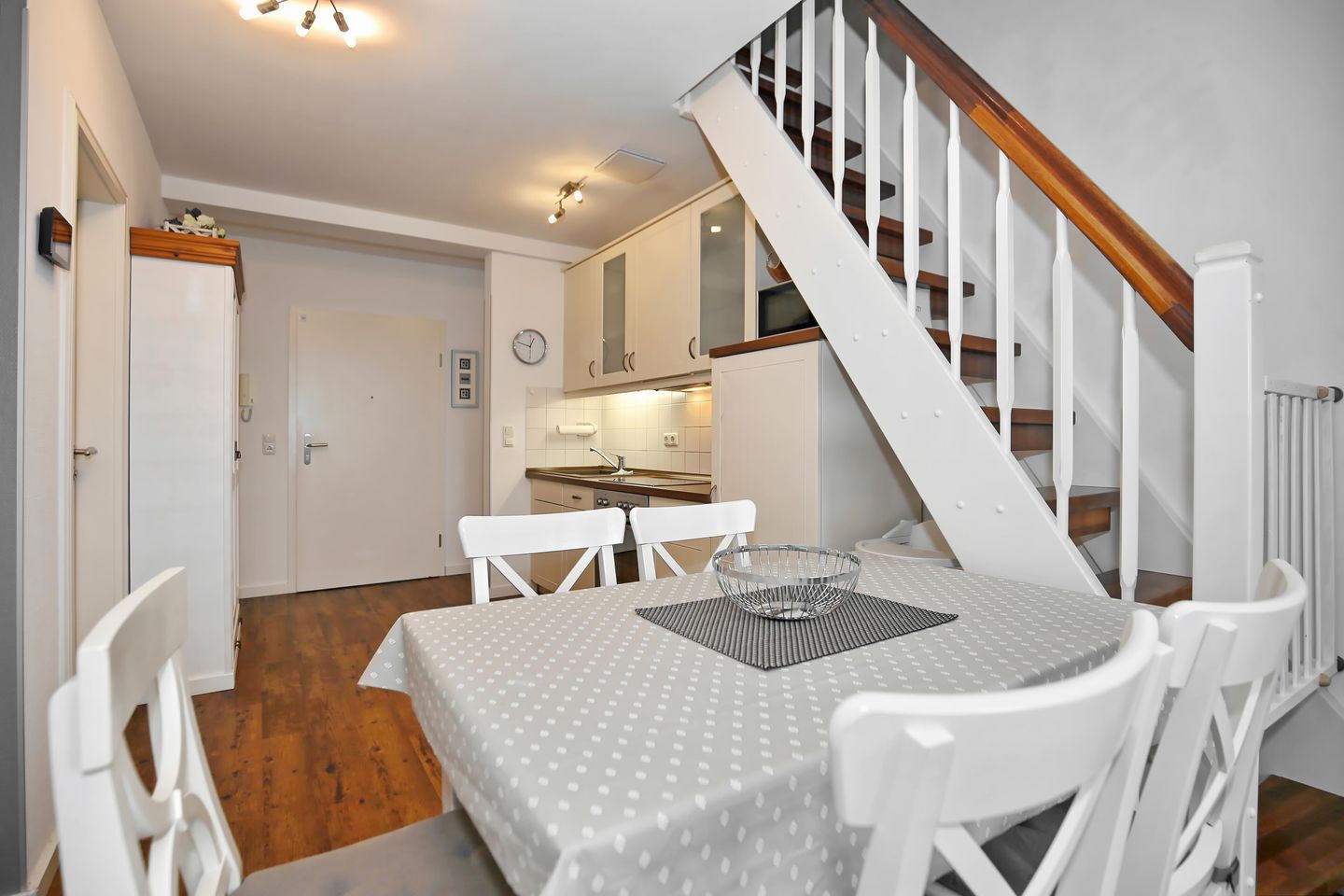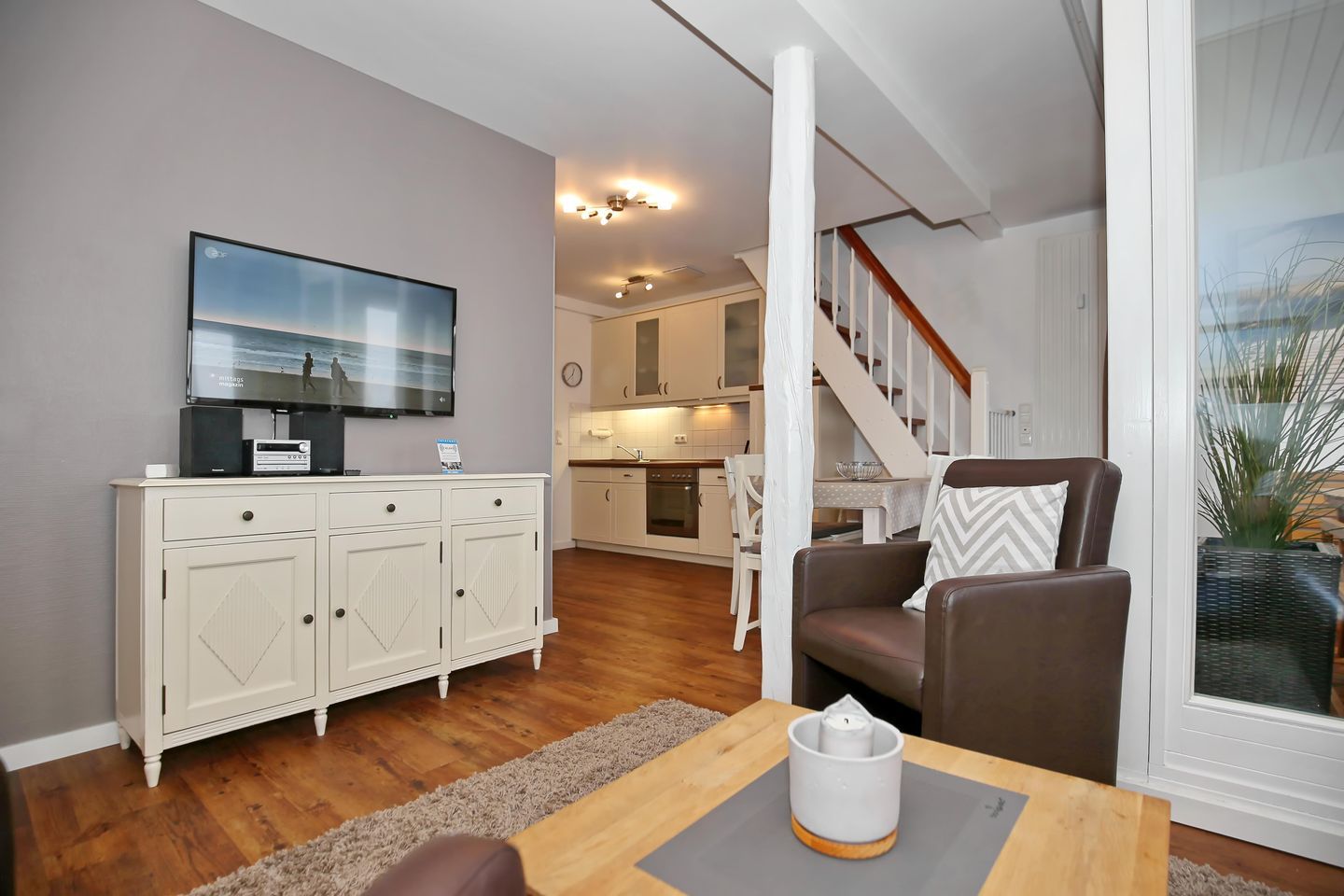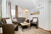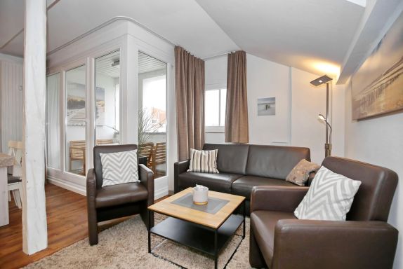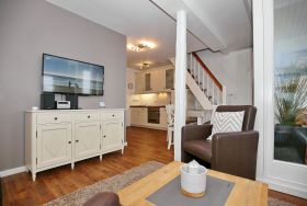 Die Ferienwohnung Nr. 44 (47m² plus 12m²) in der Ferienanlage Haut am Park ist eine 2-Zimmerwohnung mit ausgebautem Spitzboden, geeignet für 4 Personen und ein Hund. Die Strandentfernung beträgt ca. 75 Meter und Du hast seitlichen Meerblick.