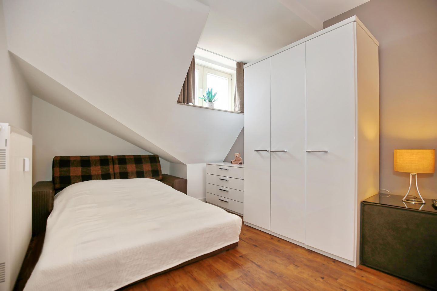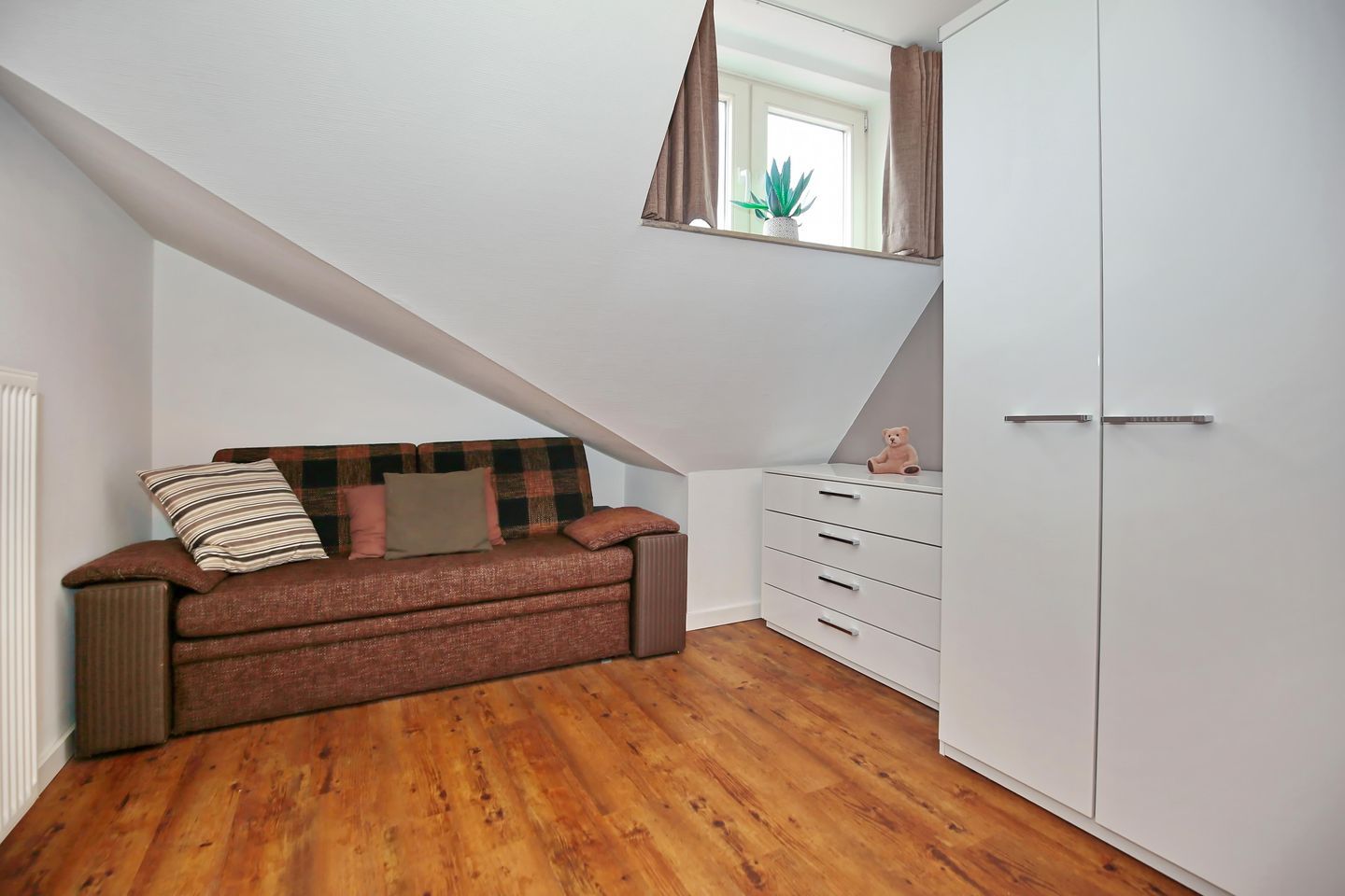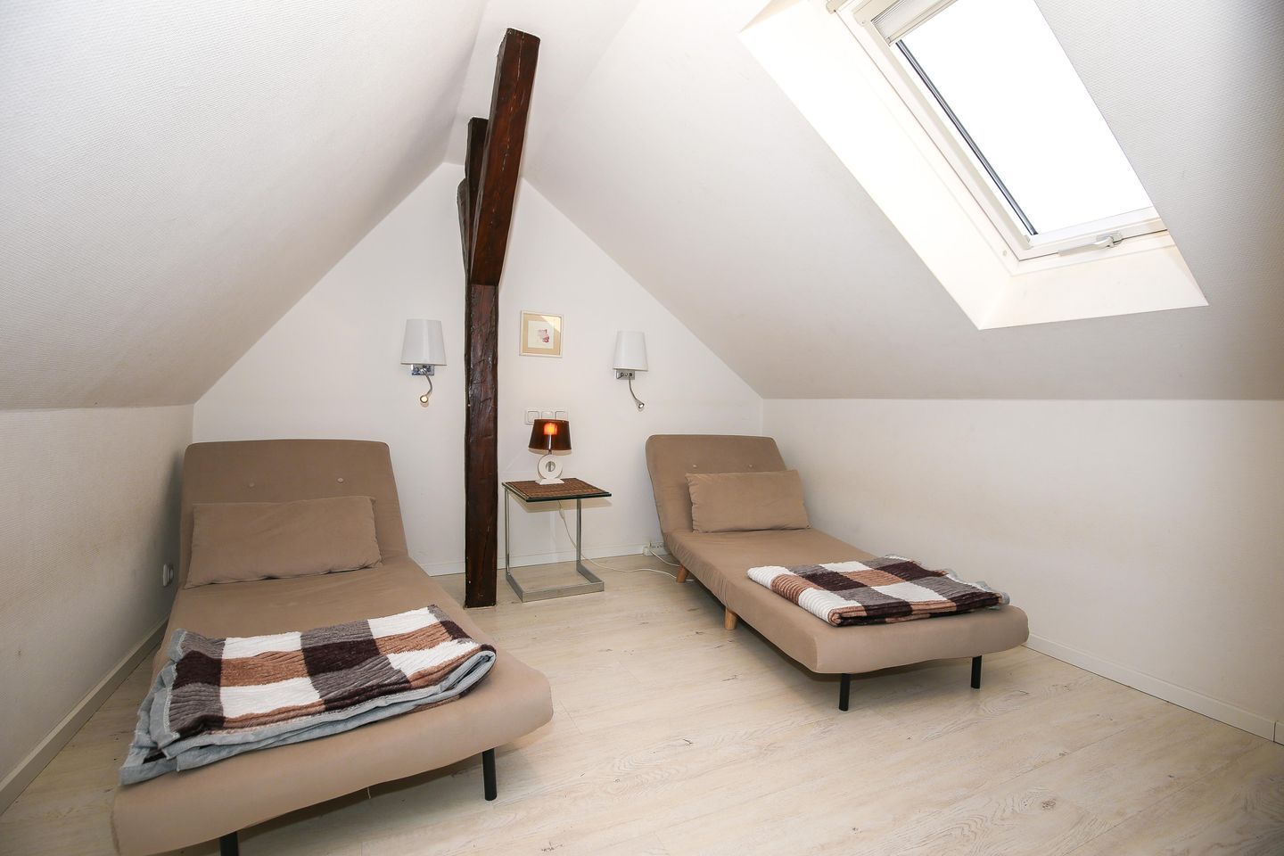 Falls Deine Kinder mit Dir im Schlafzimmer schlafen sollen, steht hier auch noch eine bequeme Schlafcouch zur Verfügung.