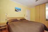 Im Schlafzimmer der Ferienwohnung erwartet dich ein bequemes Doppelbett zur erholsamen Nachtruhe. Das zweite Schlafzimmer ist mit einem Etagenbett sowie einem Fernseher ausgestattet. Vorhänge dienen dir als Sichtschutz oder zum Verdunkeln.