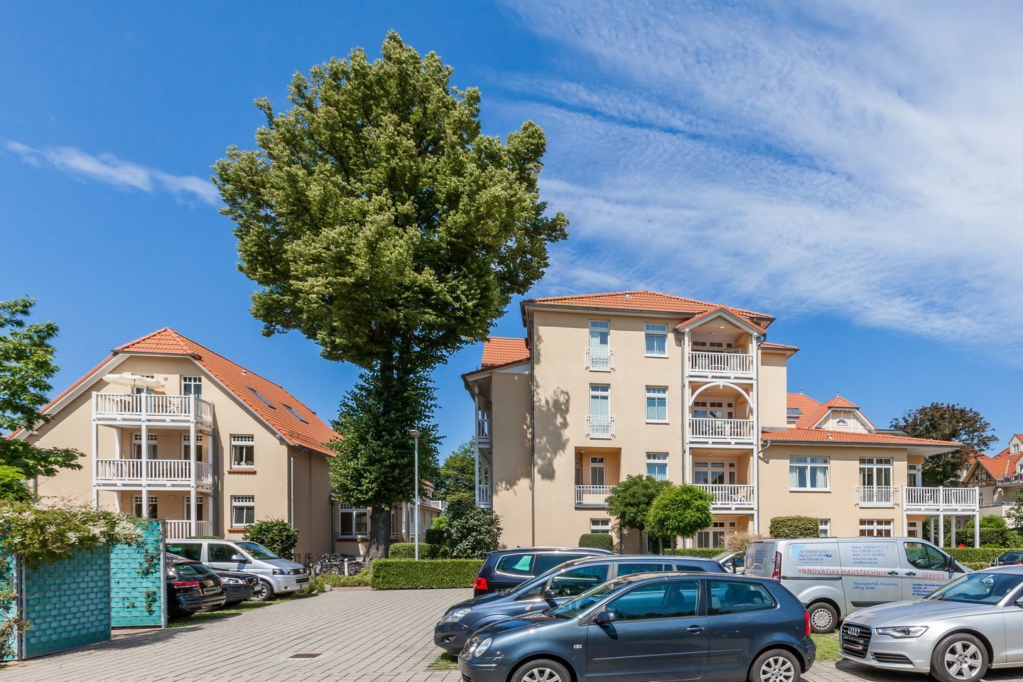 Die Apartmentanlage Dünenschloss überzeugt mit liebevoll restaurierten Balkonen, welche an die typische Bäderarchitektur erinnern. Zum weißen Sandstrand gehen Sie nur ca. 50 m. Zum Zentrum des Ortsteils Kühlungsborn West sind es nur ca. 500 m. Die Apartmentanlage besteht aus 4 Häusern mit mehreren Ferienwohnungen. Alle Ferienwohnungen in den Häusern sind über eine Treppe oder mit dem Fahrstuhl erreichbar.