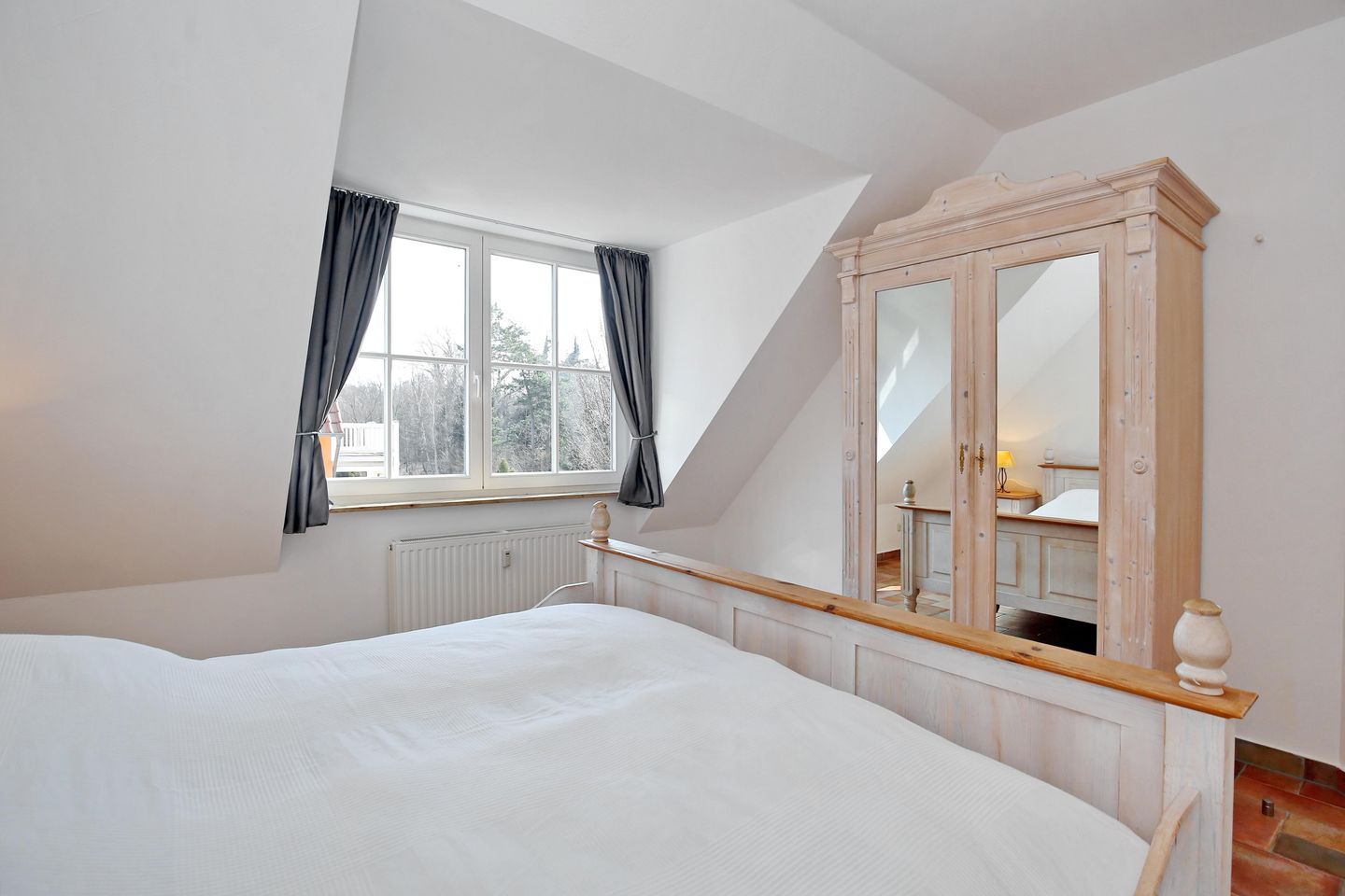 Im ersten Schlafzimmer empfängt dich ein komfortables Doppelbett zum erholsamen Schlaf. Der vorhandene Kleiderschrank bietet dir ausreichend Stauraum für deine Urlaubsgarderobe. Im zweiten Schlafzimmer empfängt dich ein ausziehbares Bett zur Nachtruhe. Vorhänge dienen dir in beiden Schlafräumen als Sichtschutz.