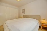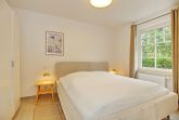 Das Schlafzimmer, das ebenfalls zur ruhigen Waldseite liegt, bietet Ihnen ein Doppelbett (2 x 90 x 200 cm) für erholsamen Schlaf. Ein 3-türiger Kleiderschrank verfügt über ausreichend Stauraum. Vorhänge und Plissees dienen Ihnen als Sichtschutz oder zum Verdunkeln.