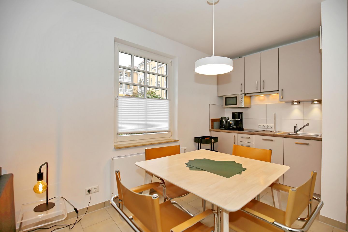 Im Wohnraum der Ferienwohnung laden ein bequemes Doppelschlafsofa und ein Sessel zu geselligen Fernsehabenden mit einem modernen Flachbild-TV sowie einem DVD- und Blu-ray-Player ein. Ebenso können Sie das kostenlose WLAN nutzen (ohne Gewähr).