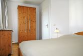 Ausruhen kannst du dich in einem der beiden Schlafzimmer der Ferienwohnung. Im ersten Schlafzimmer steht ein Doppelbett und im zweiten ein Etagenbett. In den Kleiderschränken kannst du deine Reiseutensilien bequem verstauen. Zur Verdunklung gibt es Vorhänge an den Fenstern.