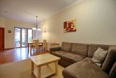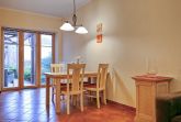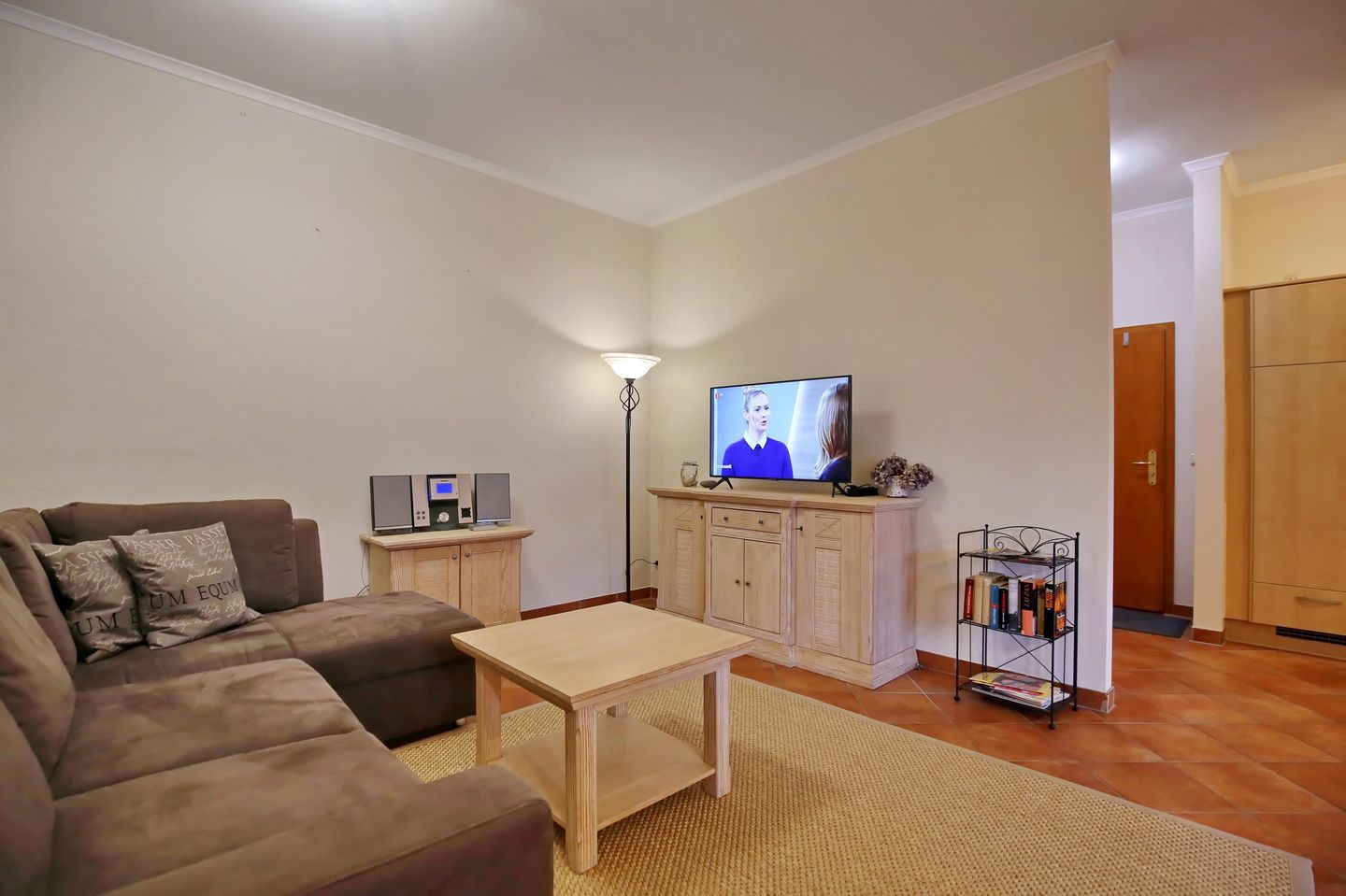 Der Wohnbereich ist mit einer gemütlichen Couchgarnitur, einem Flatscreen-TV sowie einer Stereoanlage mit CD-Player ausgestattet – perfekt für gesellige Abende. WLAN steht Ihnen kostenlos zur Verfügung. Der Essbereich bietet ausreichend Platz für gemeinsame Mahlzeiten.