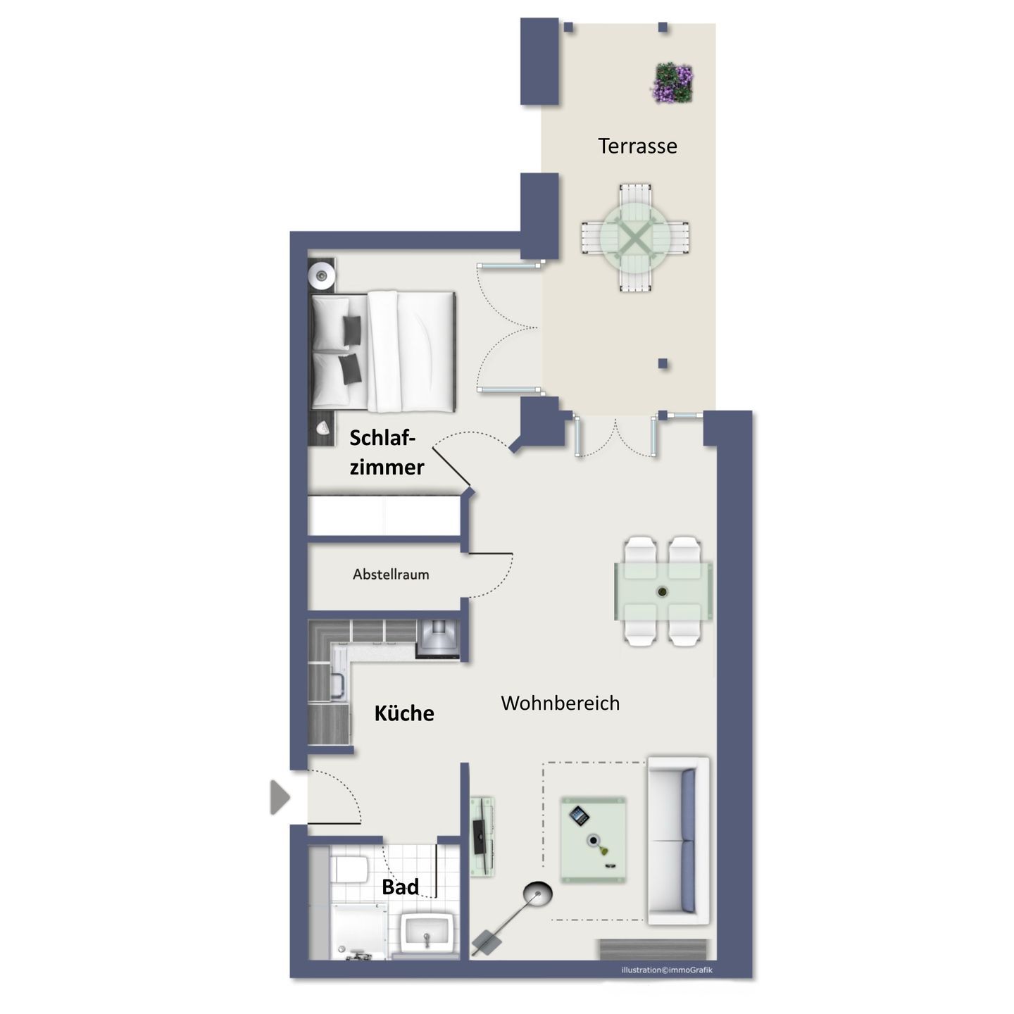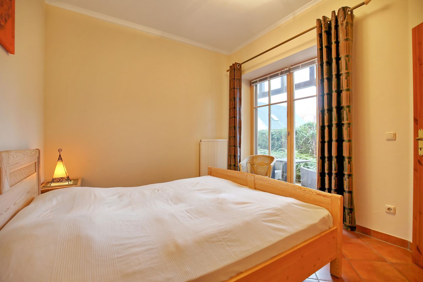 Die 60 m² große 2-Zimmer-Wohnung liegt im Erdgeschoss und verfügt über eine großzügige, möblierte Terrasse mit West-Ausrichtung – ideal für entspannte Stunden. Die Wohnung besteht aus einem Wohn- und Essbereich, einer Küchenzeile, einem Schlafzimmer und einem Duschbad und bietet Platz für bis zu 4 Personen mit Hund. Der Strand ist nur etwa 300 Meter entfernt, das Stadtzentrum erreichen Sie in ca. 5 Minuten.