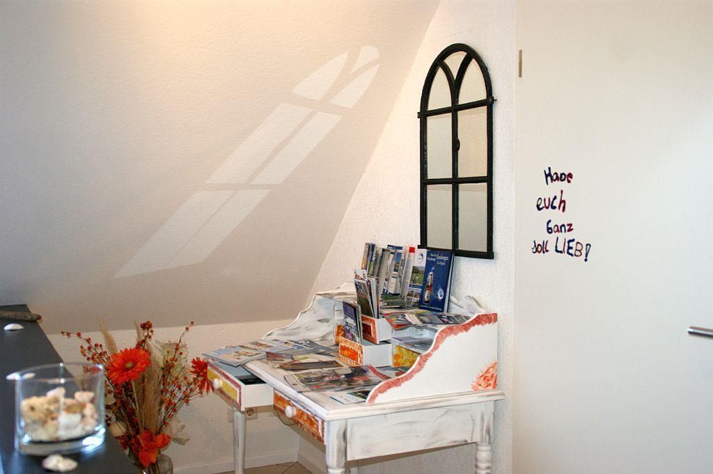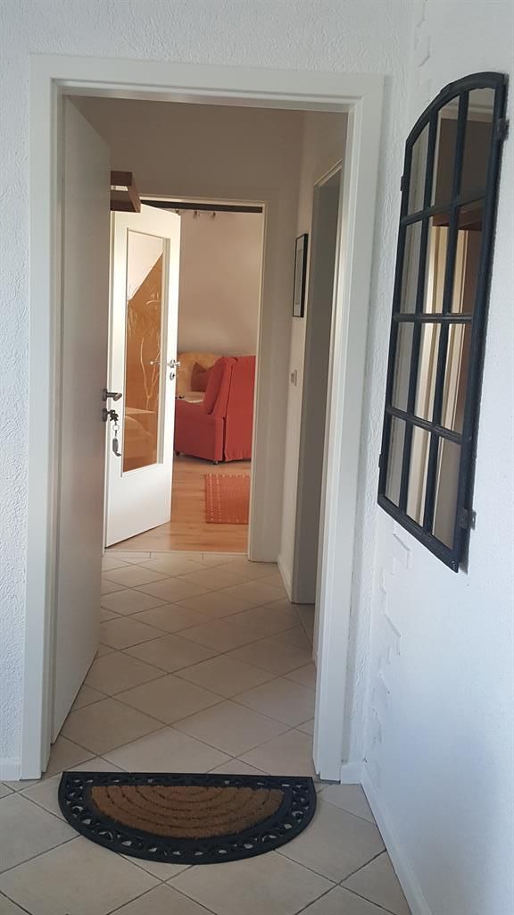 Die 3-Sterne-Ferienwohnung Seeblick hat eine Größe von ca 50 qm und befindet sich im Obergeschoss des Wohnhauses. Durch einen gemeinsamen Hauseingang gelangen Sie in den Flur. Über eine Treppe gelangen Sie ins Obergeschoss.