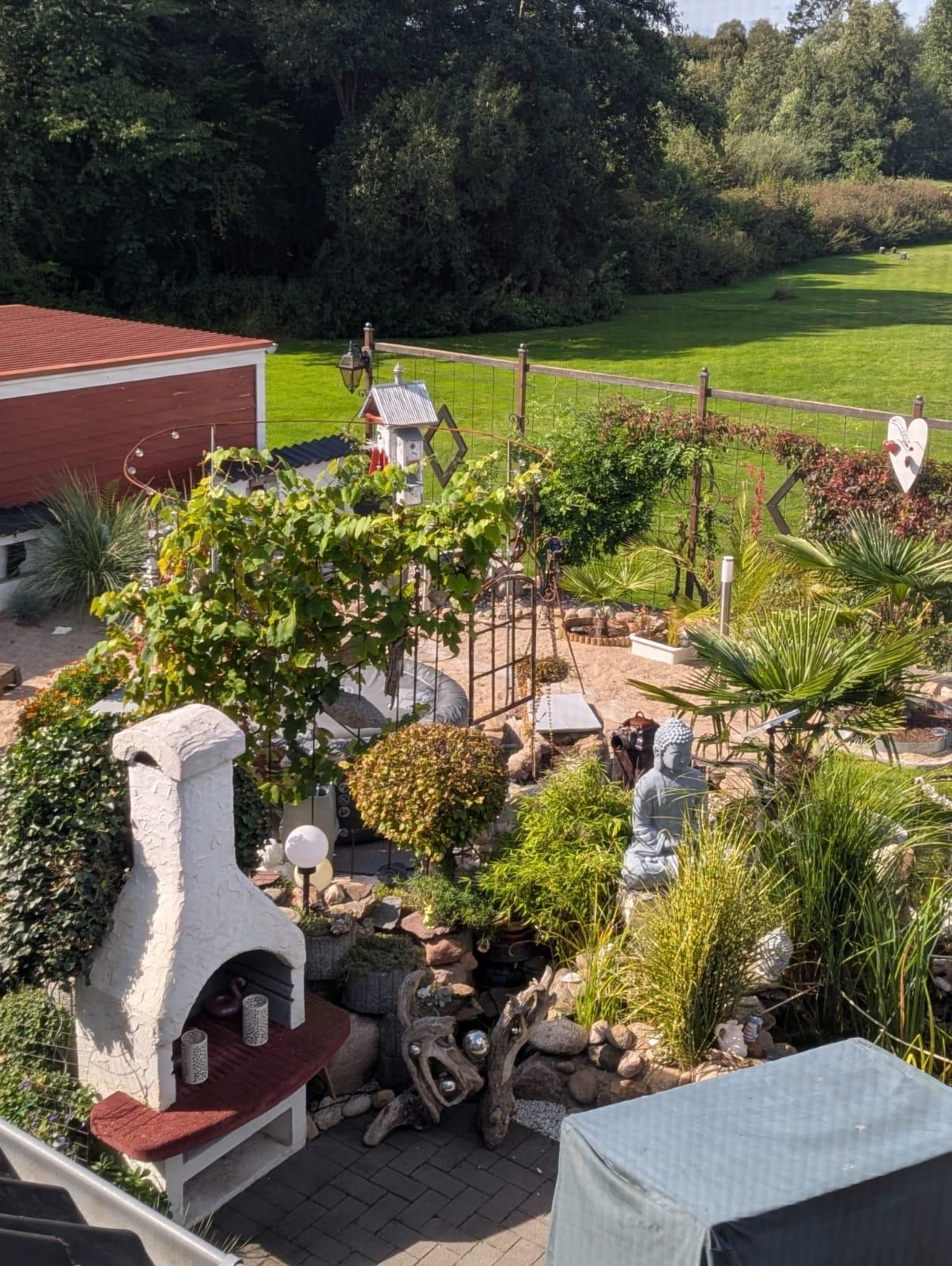 • Sitzecke im Garten, Gartenmöbel, Grill