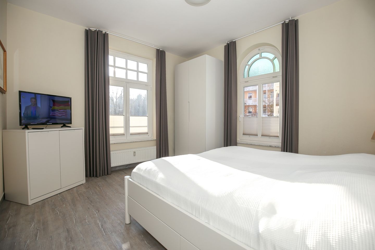 Das Schlafzimmer ist mit einem Doppelbett und einem Kleiderschrank sowie einem 2. Flachbild-TV ausgestattet.