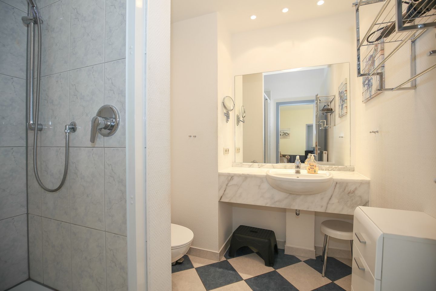 Die Ferienwohnung verfügt selbstverständlich auch über ein Duschbad mit WC, einen Föhn und einen Kosmetikspiegel.
