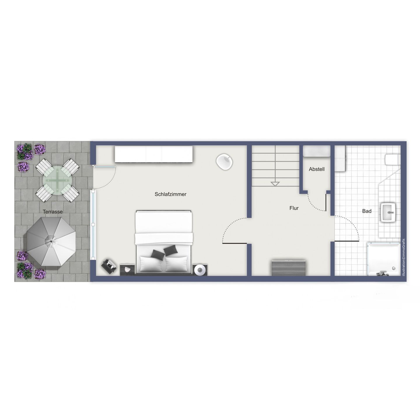Die Ferienwohnung 02 in der Ferienanlage La Mer ist eine 2-Zimmer-Wohnung für bis zu 4 Personen.