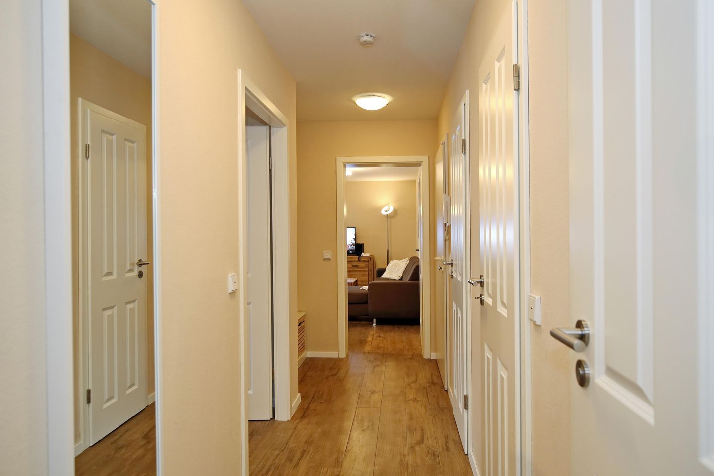 Ihre Ferienwohnung befindet sich im 2. Obergeschoss. Mit einer Wohnfläche von 64 m² verfügt sie über einen komfortablen Wohn- und Essbereich, zwei geräumige Schlafzimmer, eine moderne Küchenzeile, ein Duschbad sowie ein zusätzliches Gäste-WC – ideal für einen erholsamen und komfortablen Ostseeurlaub. Der Strand ist nur etwa 100 Meter entfernt.