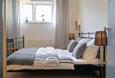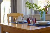 Im Schlafzimmer findest du ein komfortables Doppelbett mit zwei Matratzen und einen Kleiderschrank. Das Schlafzimmer ist mit einem Fliegengitter ausgestattet. Der Bodenbelag im Schlafzimmer ist Teppich, im Wohn-/Esszimmer sind es Vollholzdielen.