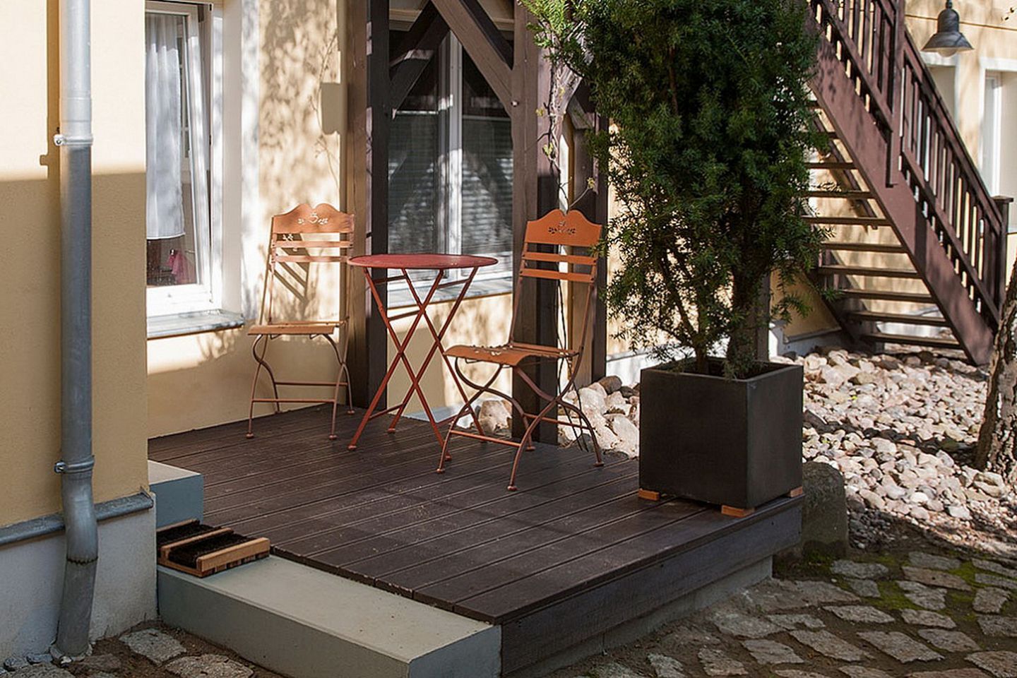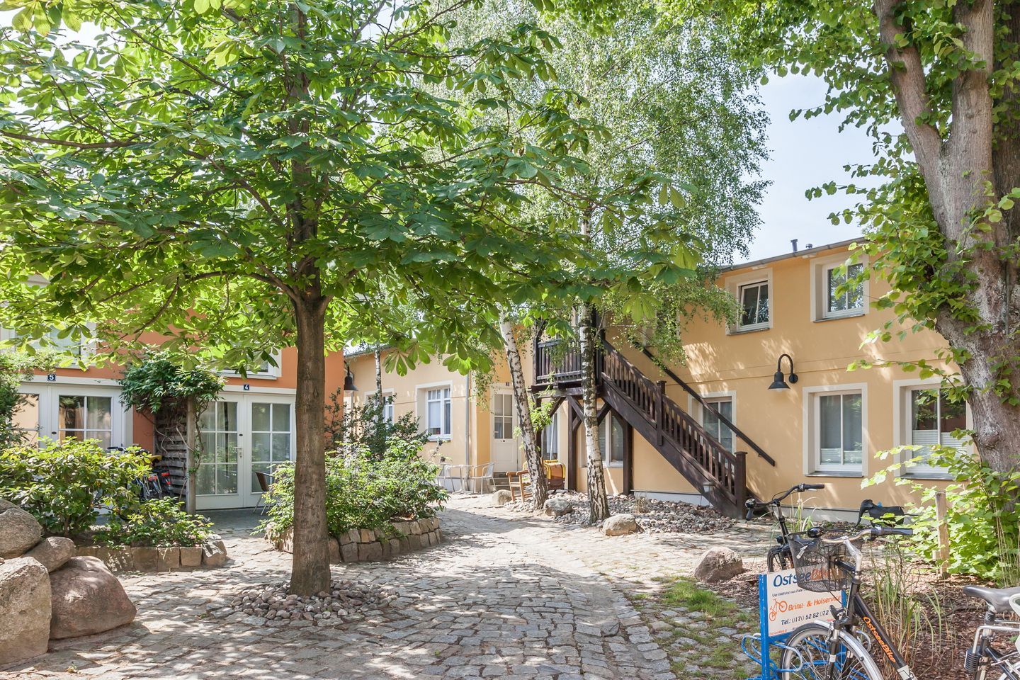 Die in sich geschlossene Ferienanlage ist eine idyllische und grüne Oase, die sich durch ihre Individualität von vielen Ferienanlagen in Kühlungsborn unterscheidet. Die Ostsee ist von hier aus in ca. 20 Minuten fußläufig durch den Stadtwald zu erreichen. Die begrünte Hofanlage bietet vielfältige Möglichkeiten zur Beschäftigung und Entspannung. Auch Tischtennis kann gespielt werden. Der Außenpool ist derzeit bis auf Weiteres geschlossen und kann daher nicht genutzt werden.