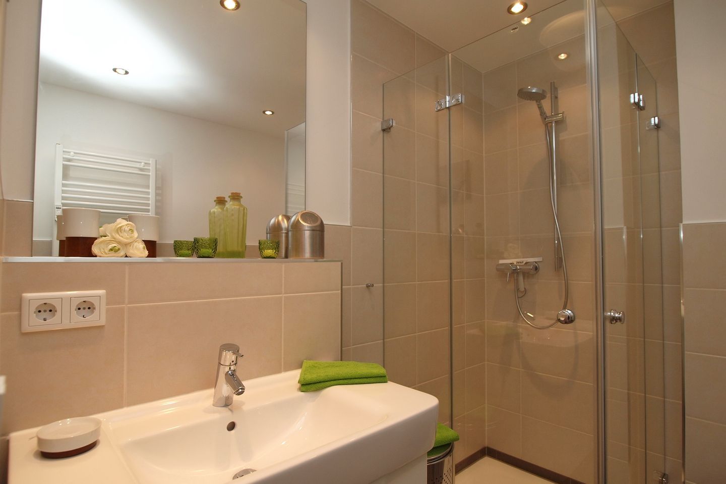 Im Schlafzimmer steht Ihnen ein komfortables Doppelbett mit zwei Matratzen (90 cm x 200 cm) sowie ein Flachbild-TV zur Verfügung. Der Kleiderschrank bietet ausreichend Stauraum für Ihre Sachen. Natürlich gehört auch ein Duschbad mit Föhn und Dusche zur Wohnung.