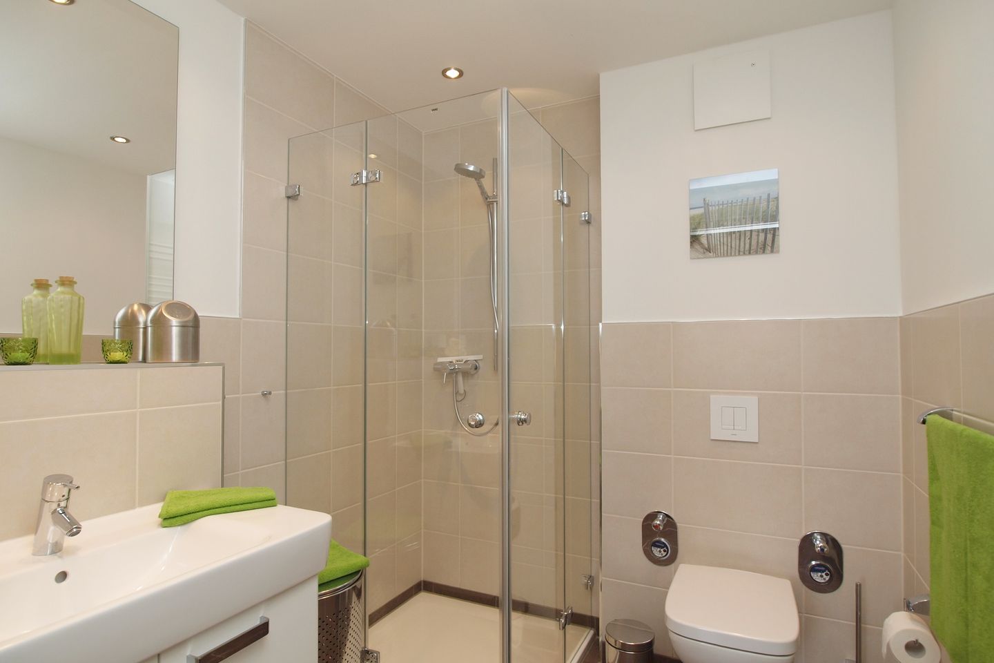 In einem separaten Fahrradraum können mitgebrachte Fahrräder abgestellt werden. Im Erdgeschoss des Hauses finden Sie darüber hinaus einen Raum mit Münzwaschmaschinen und –trockner vor. Bis zum Strand sind es ca. 600 m. Ihr Auto können Sie sicher auf dem dazugehörigen Außenstellplatz abstellen.