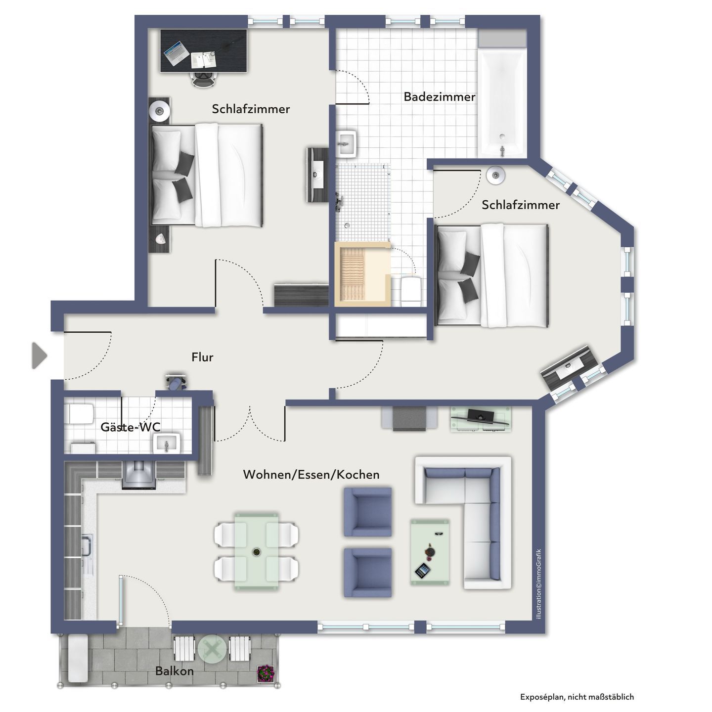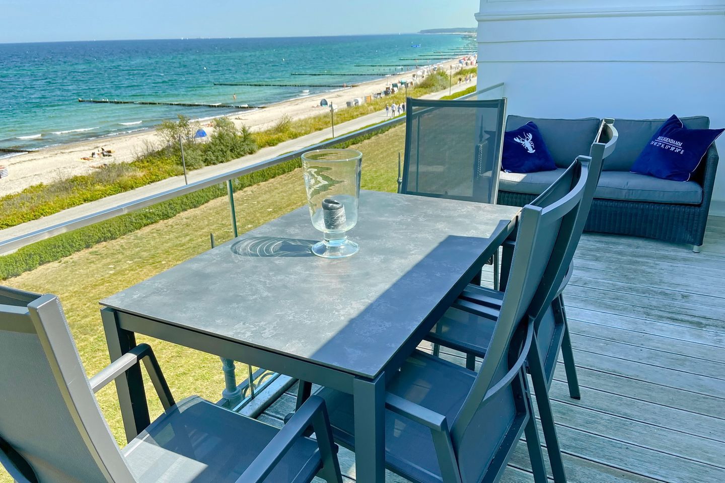 Die Ferienwohnung 05 in der Villa Greif ist eine 110 m² 3-Zimmer-Wohnung für bis zu 4 Personen mit großem Seebalkon, exklusiven Designermöbeln und Wellnessbad mit Sauna.