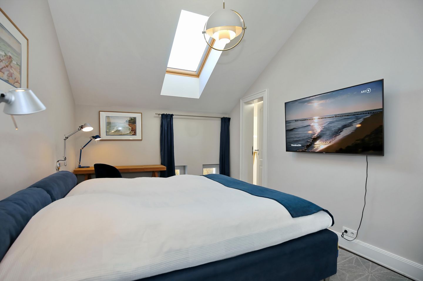 Das zweite Schlafzimmer erwartet Sie ebenfalls mit einem komfortablen Boxspringbett, einem Schreibtisch, einer Kommode und ebenfalls mit einem internetfähigem Flatscreen-TV.